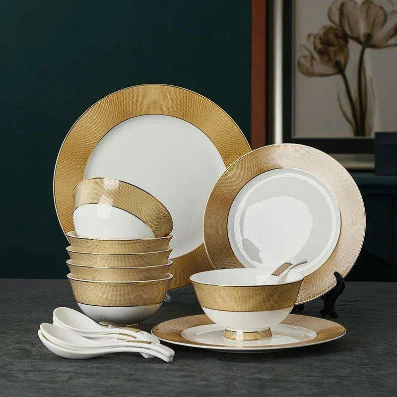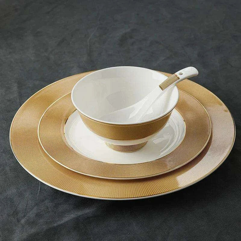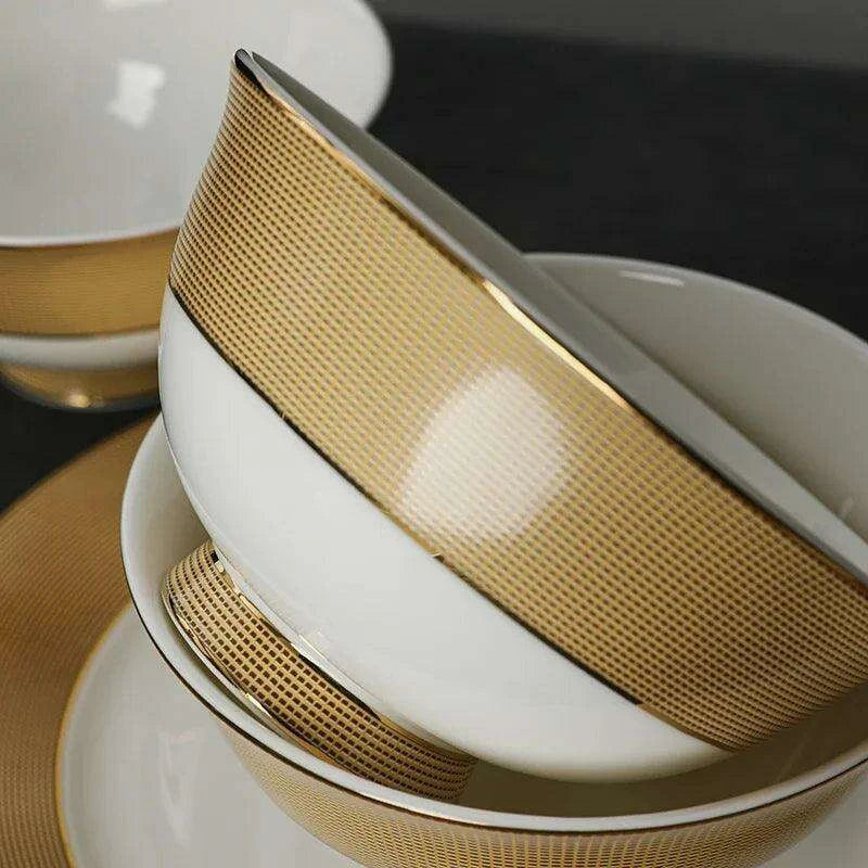 Luxurious Japanese Dining Set with Elegant Gold Ceramic Utensils for Elevated Mealtime Experience