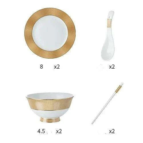 Elegant Japanese Dining Set with Gold Ceramic Utensils