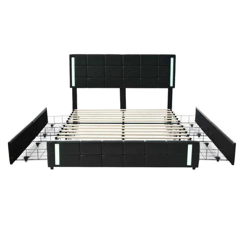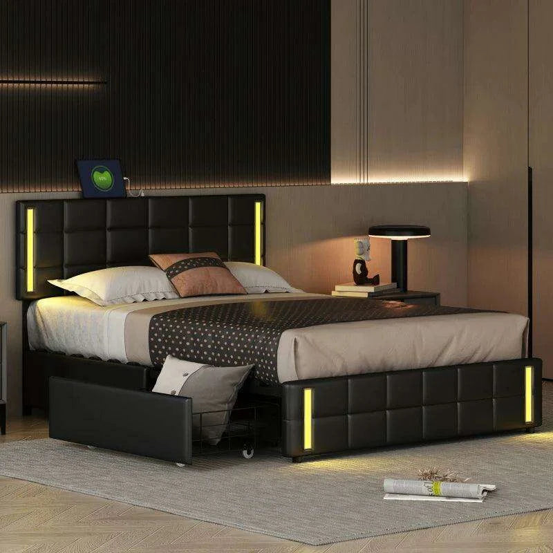 Luxurious Queen Bed with Smart LED Lighting, USB Charging, and Spacious Storage Options