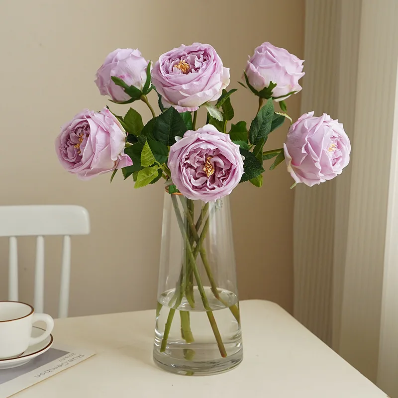 리얼 터치 대형 오스틴 로즈 모란 홈 웨딩 장식을위한 고품질 인공 꽃 크리스마스 꽃병 장식 플로어