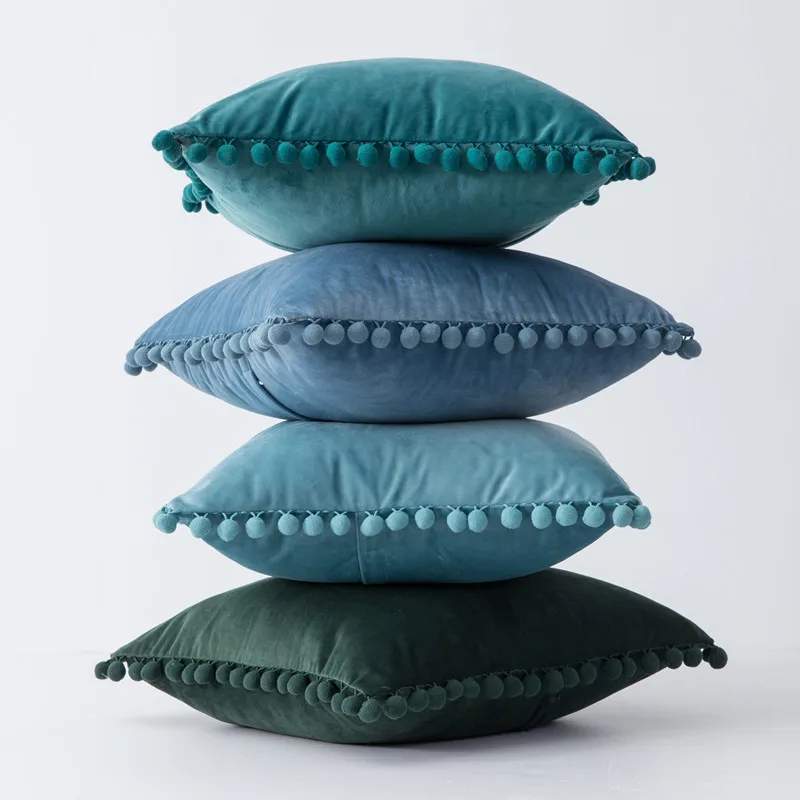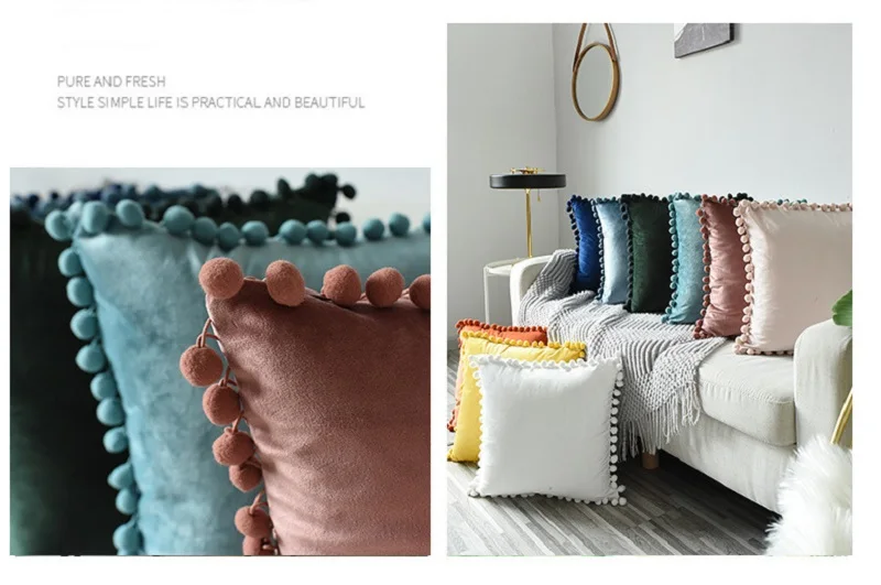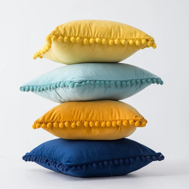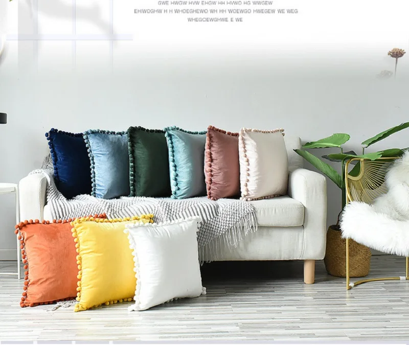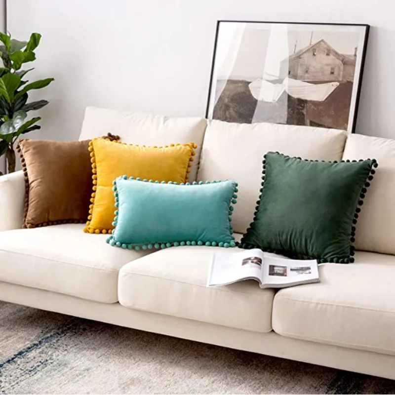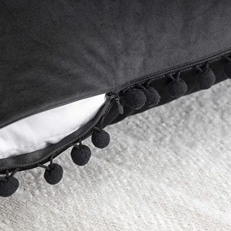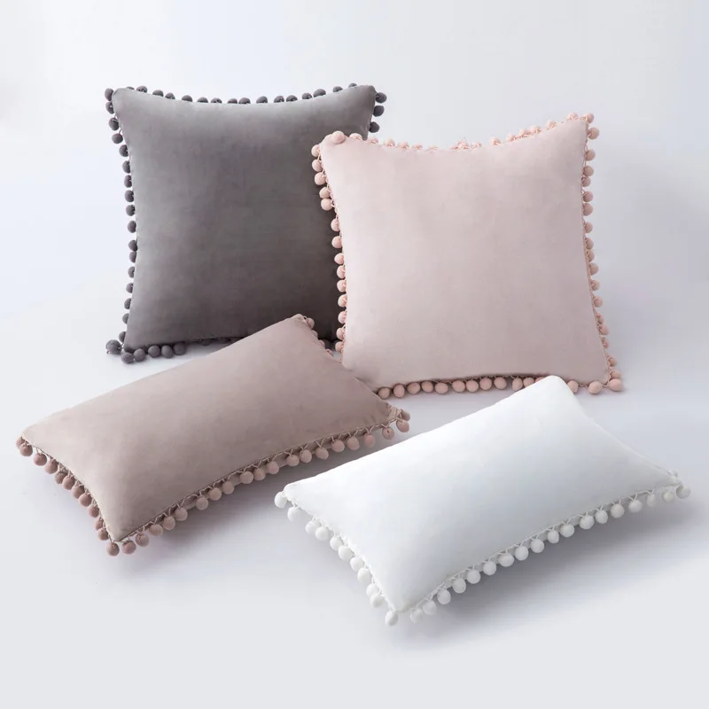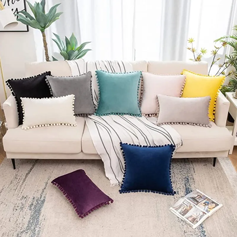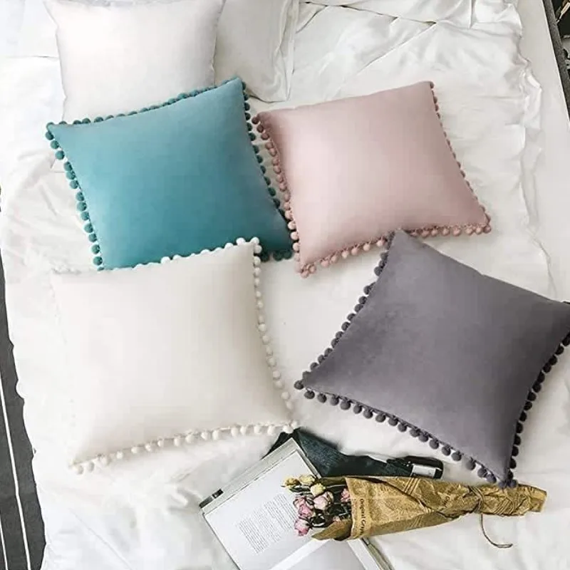 부드러운 폼폼이 있는 벨벳 플러시 던지기 베개 케이스 - 공간에 감각과 편안함을 더하세요