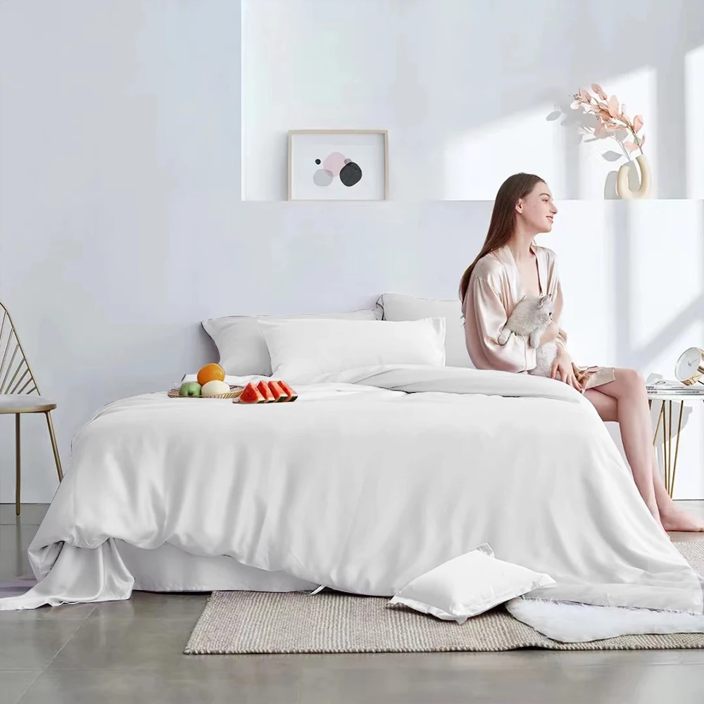 흰색 100% 실크 이불 커버 베개 커버 및 침대 시트 세트