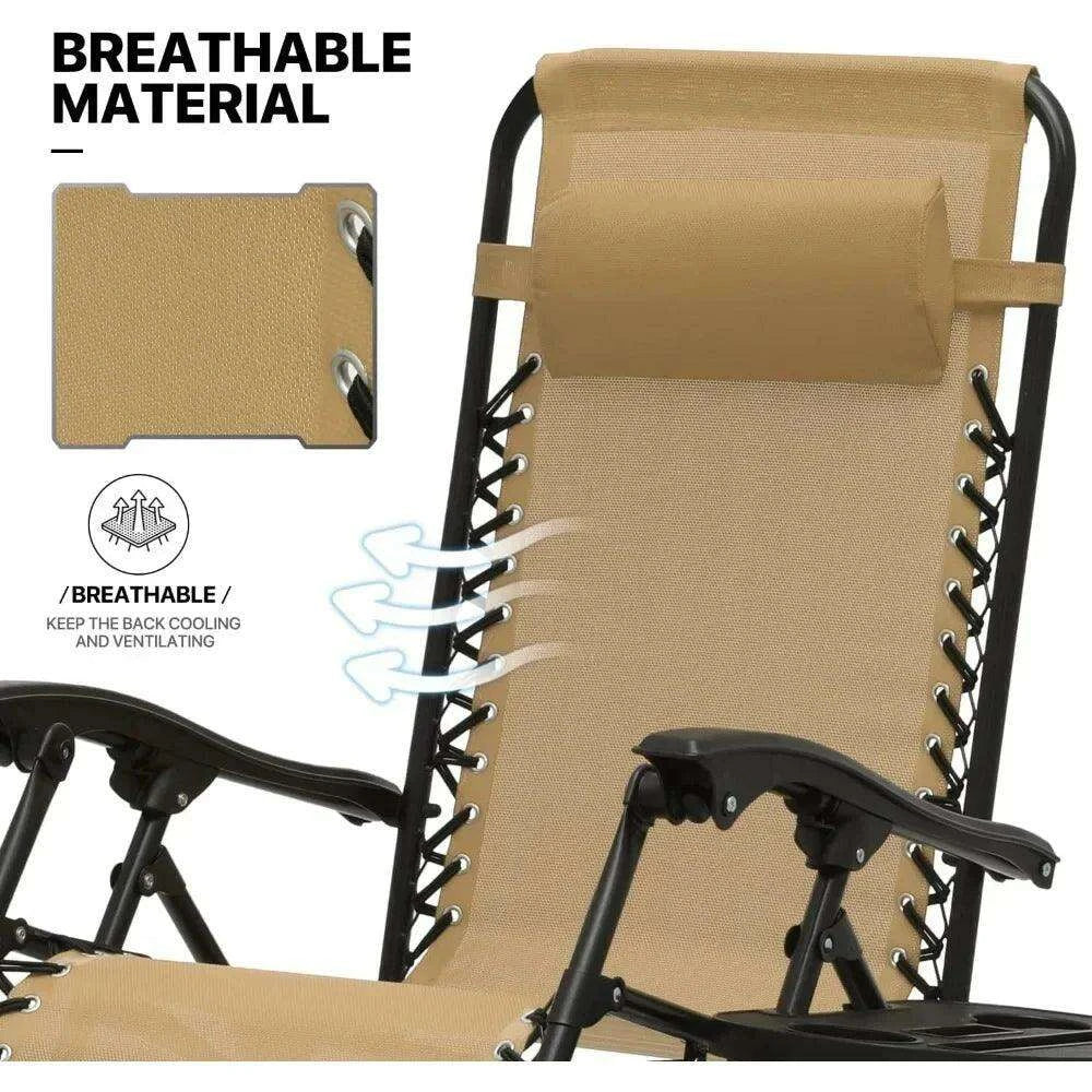 Premium Outdoor Reclining Lounge Chair with Integrated Cup Holder and Neck Support