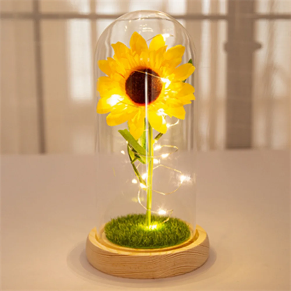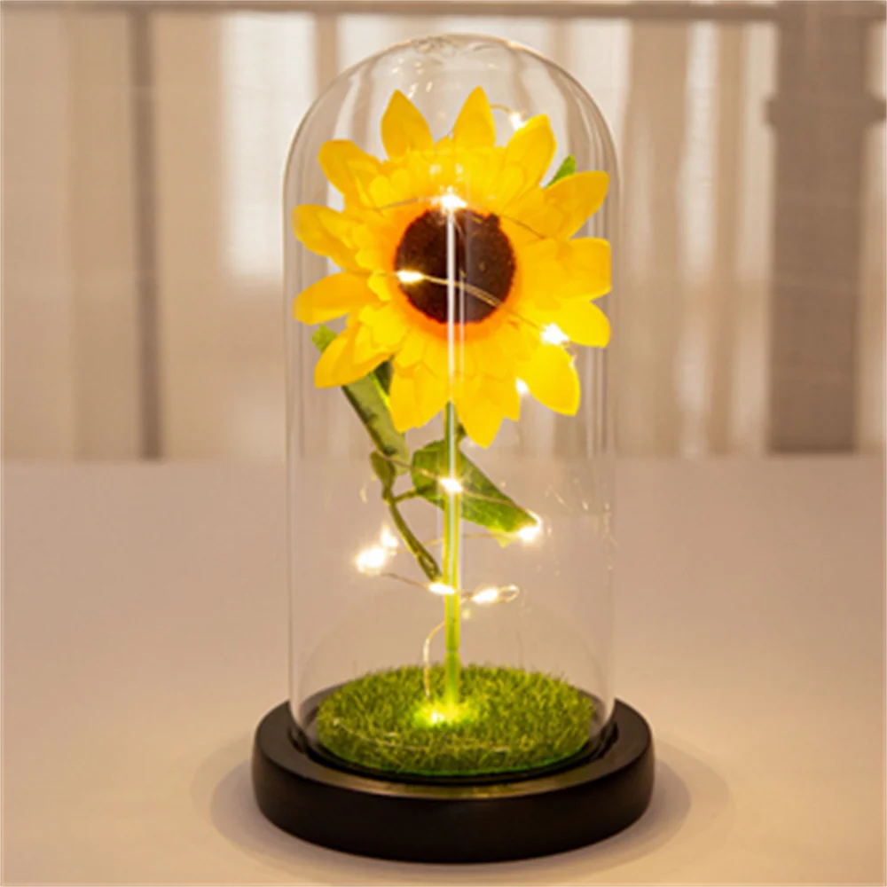 미녀와 야수 장미 보존 된 발렌타인 데이 선물, 조명이있는 유리 돔의 독점적 인 장미-진짜 장미 어머니의 날 선물