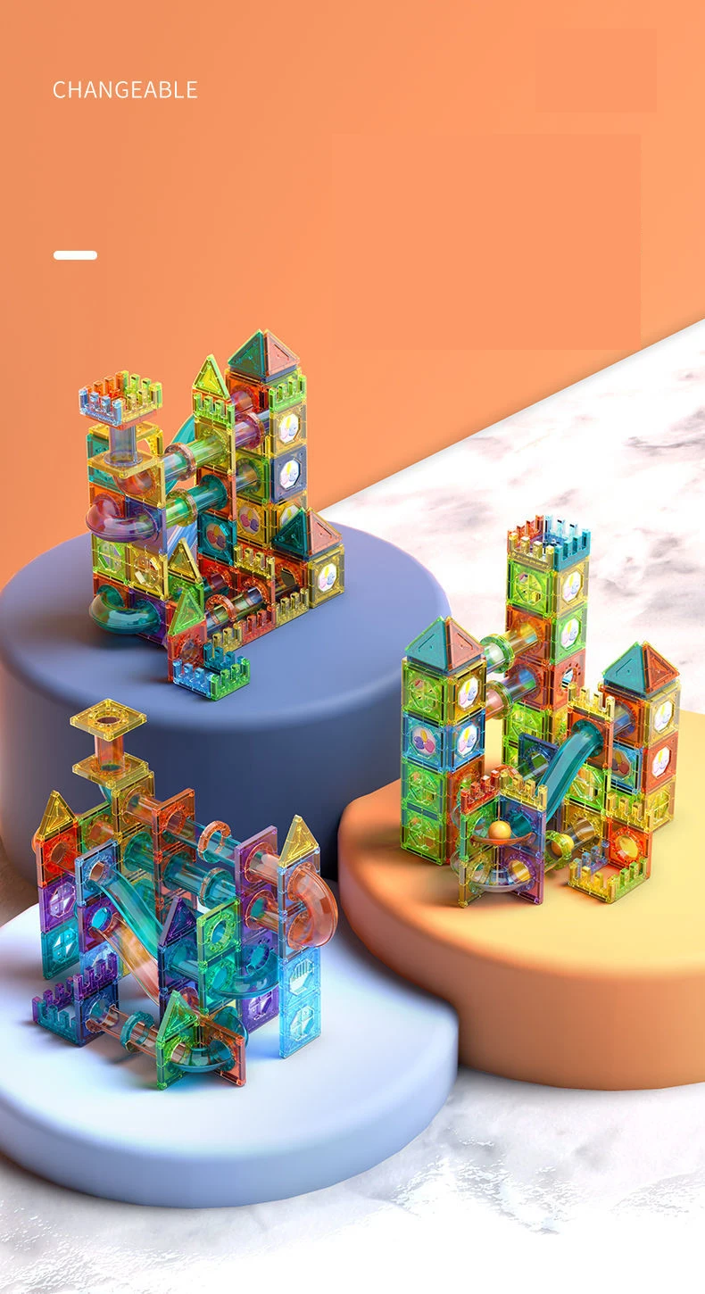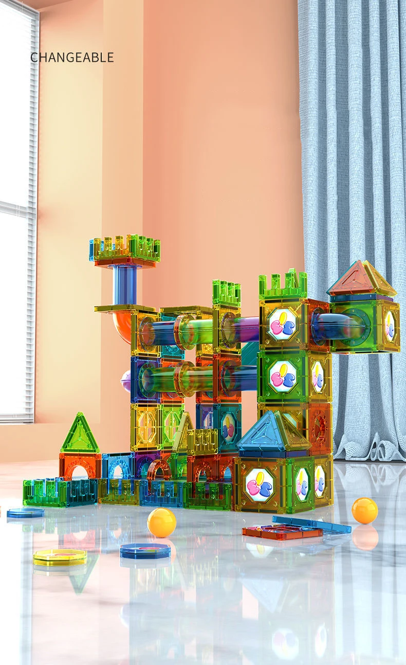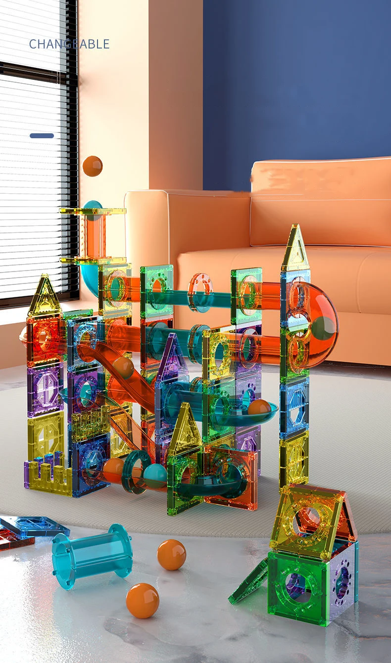 마그네틱 시트 빌딩 블록 디자이너 자석 미로 레이스 실행 공 대리석 트랙 깔때기 슬라이드 벽돌 교육 DIY 완구 어린이를위한