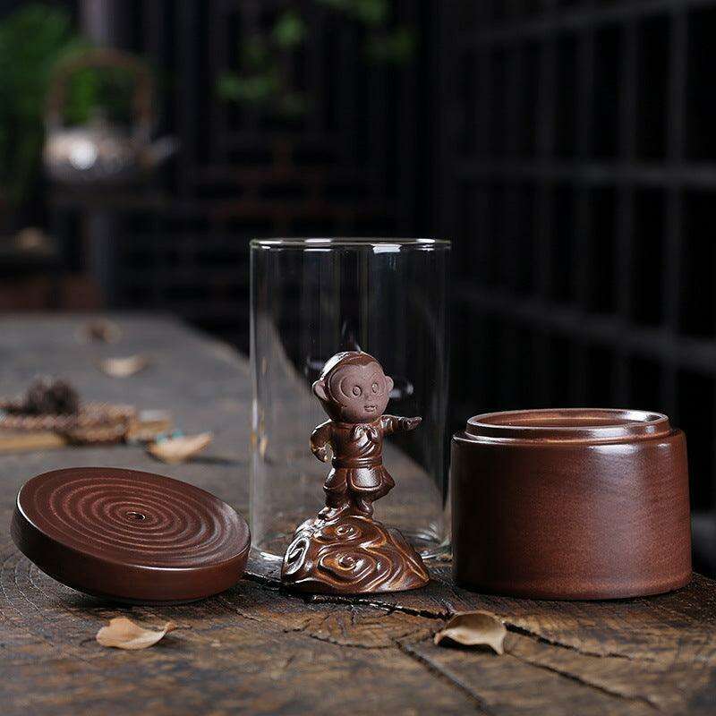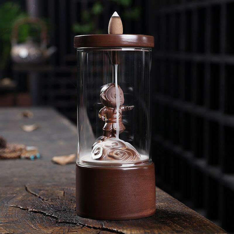 Elegant Monkey King Backflow Incense Holder with Protective Windproof Cover