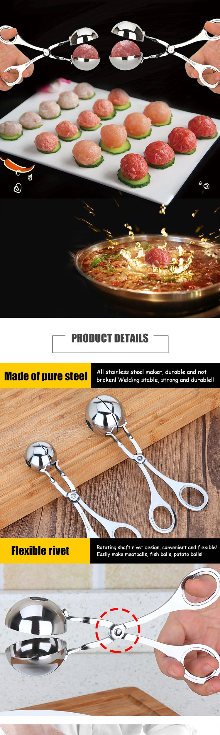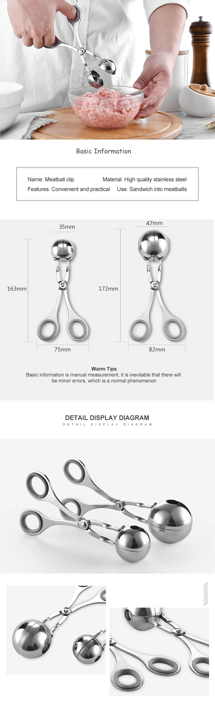 스테인레스 스틸 미트볼 메이커 클립 피쉬 볼 쌀 공 금형 양식 도구 만들기 주방 악세사리 가제트 요리