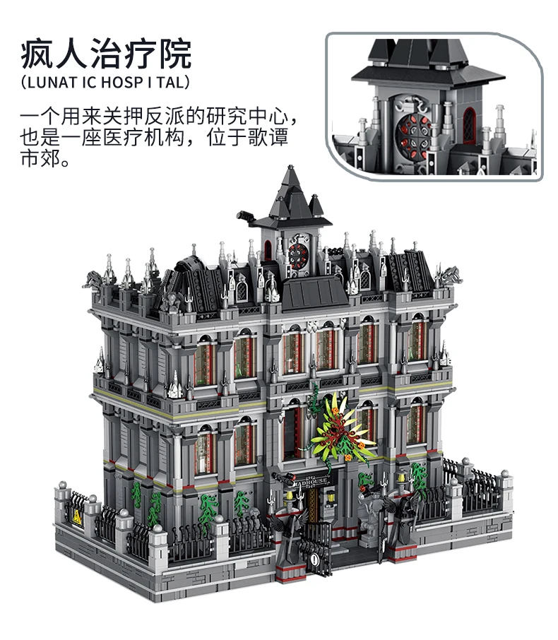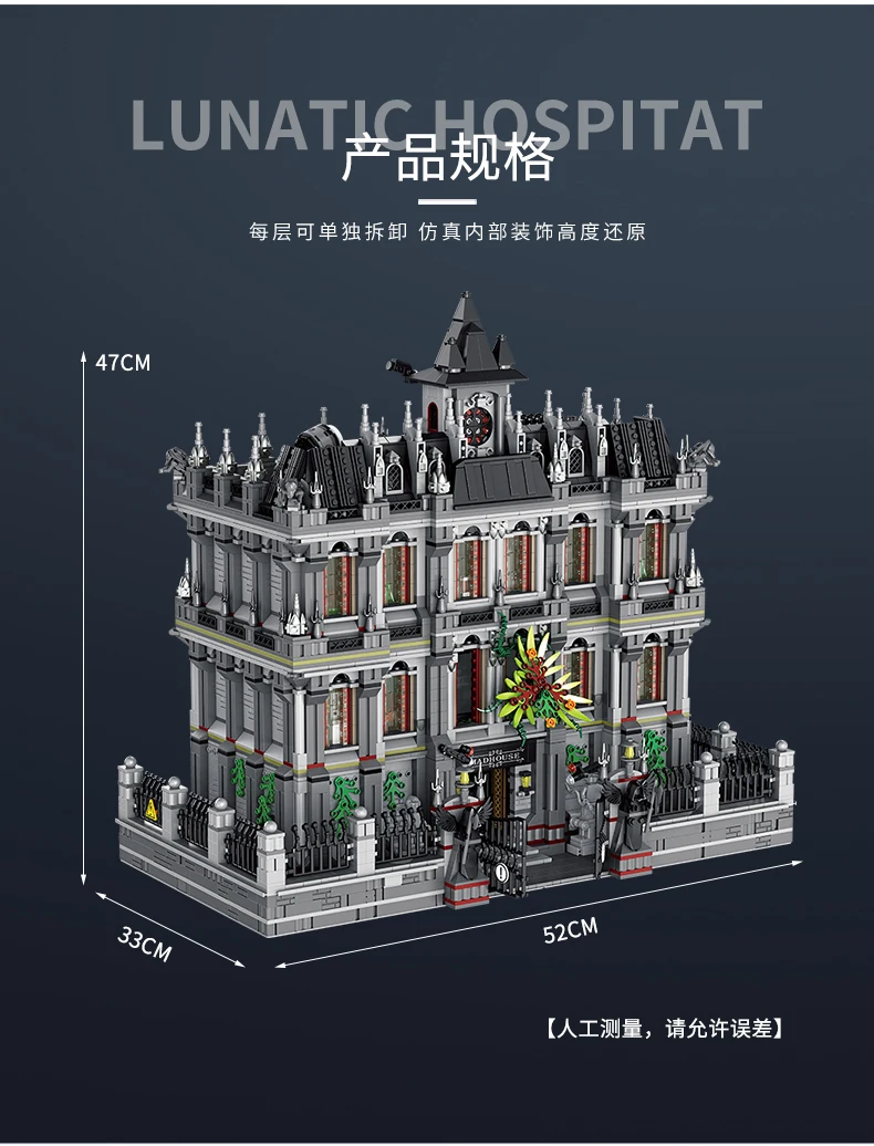 정신병원 건축 빌딩 블록 키트 - 어린이 모델 조립 생일 선물을 위한 7537개 조각