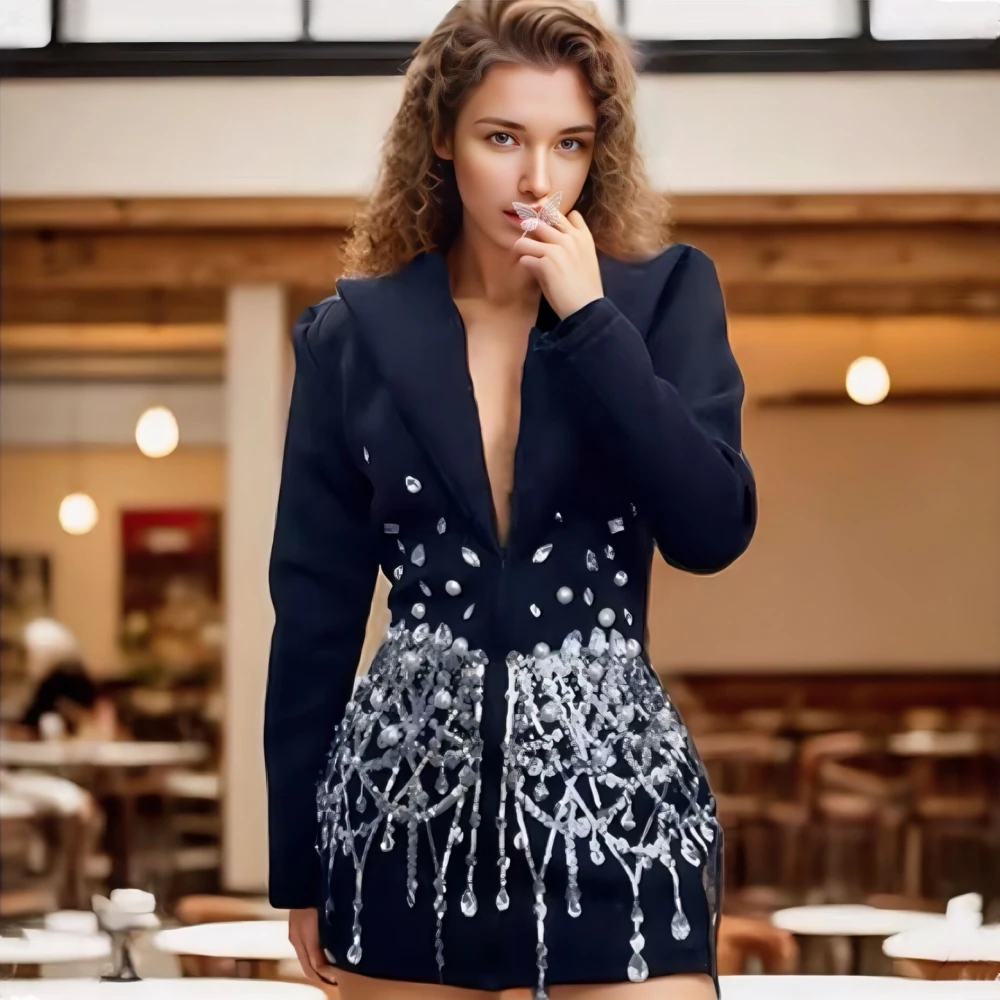 반짝 이는 크리스탈 진주 미니 드레스 블랙 컬러 패션 정장 칼라 생일 저녁 파티 나이트 클럽 드레스 가수 드레스
