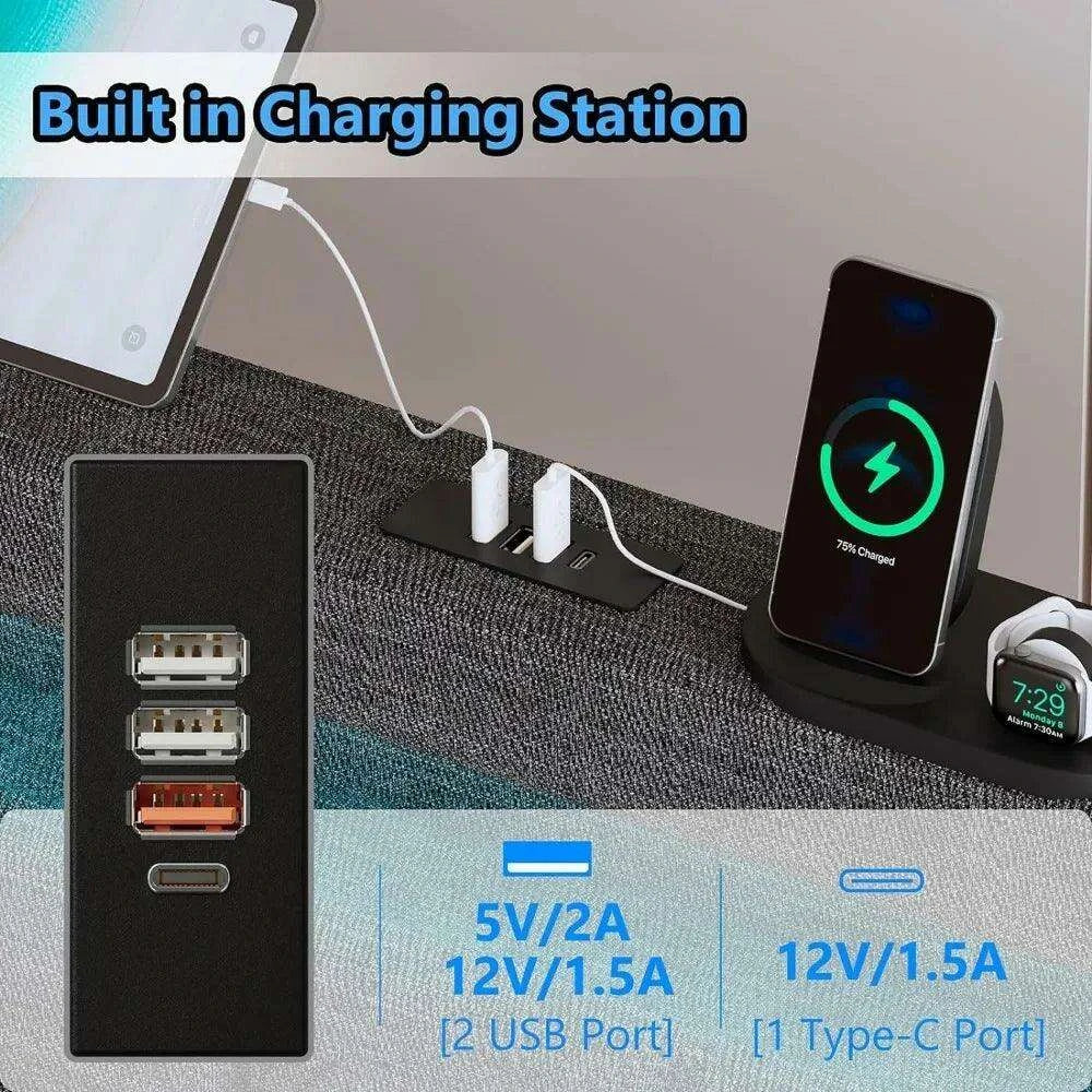 • Convenient Charging Station: Stay connected effortlessly with three USB ports and one Type C port on the headboard, allowing you to charge your devices right from the comfort of your bed.