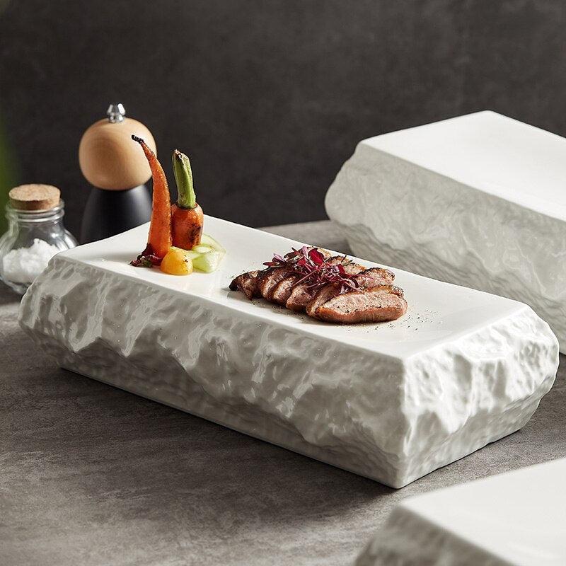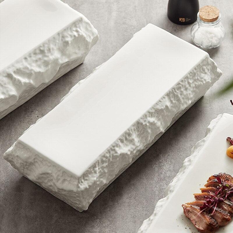 화이트 스톤 플레이트 디너 플레이트 호텔 레스토랑 식기 직사각형 특수 트레이 스시 플레이트 플랫 플레이트 홈 메인 접시 플레이트