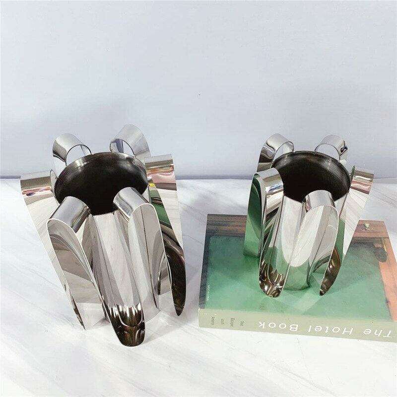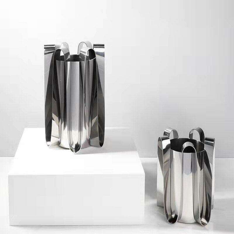조각된 우아함: 북유럽 가정 장식을 위한 은색 금속 보타니카 꽃병
