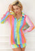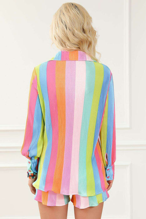멀티컬러 레인보우 스트라이프 크링클 셔츠와 반바지 복장