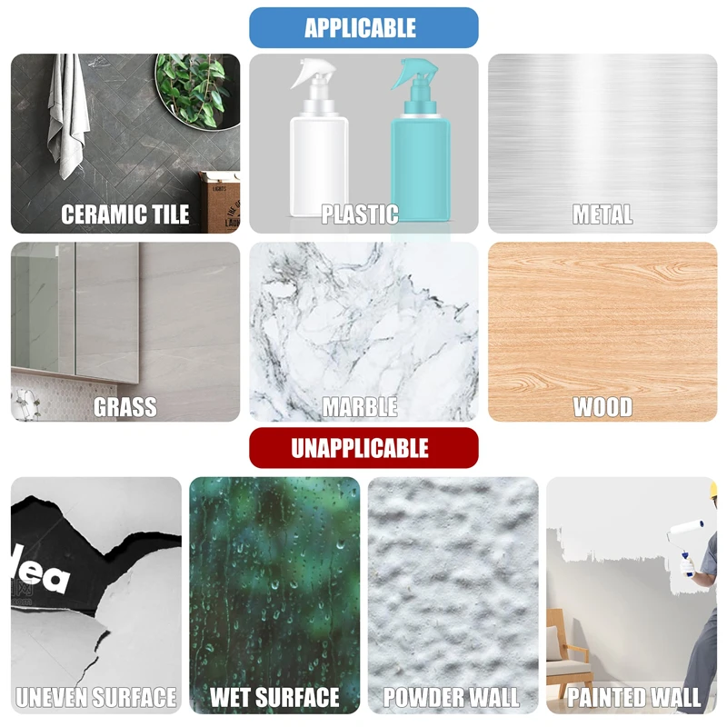 적용 가능한 표면: 이 양면 테이프는 타일, 유리, 거울, 대리석 등과 같은 매끄러운 표면에 붙습니다.