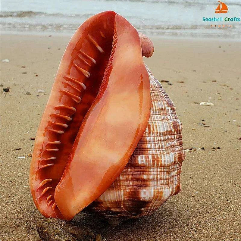 Natural Orange Bull's-mouth Conch Shells for Nautical Home Styling & Aquatic Decor (12-17CM)