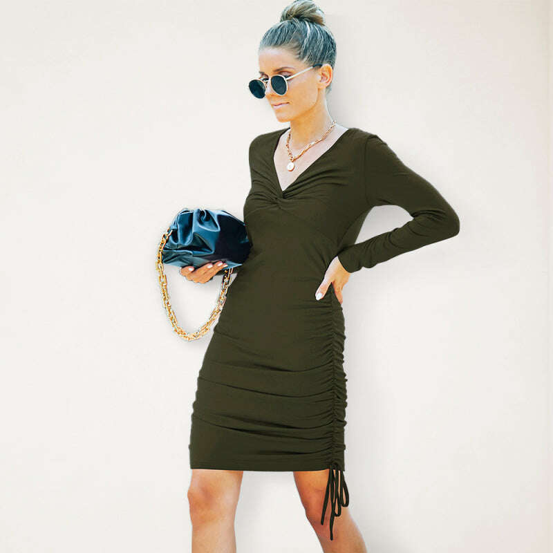 New style long sleeve v-neck sexy slim dress skirt for autumn wear