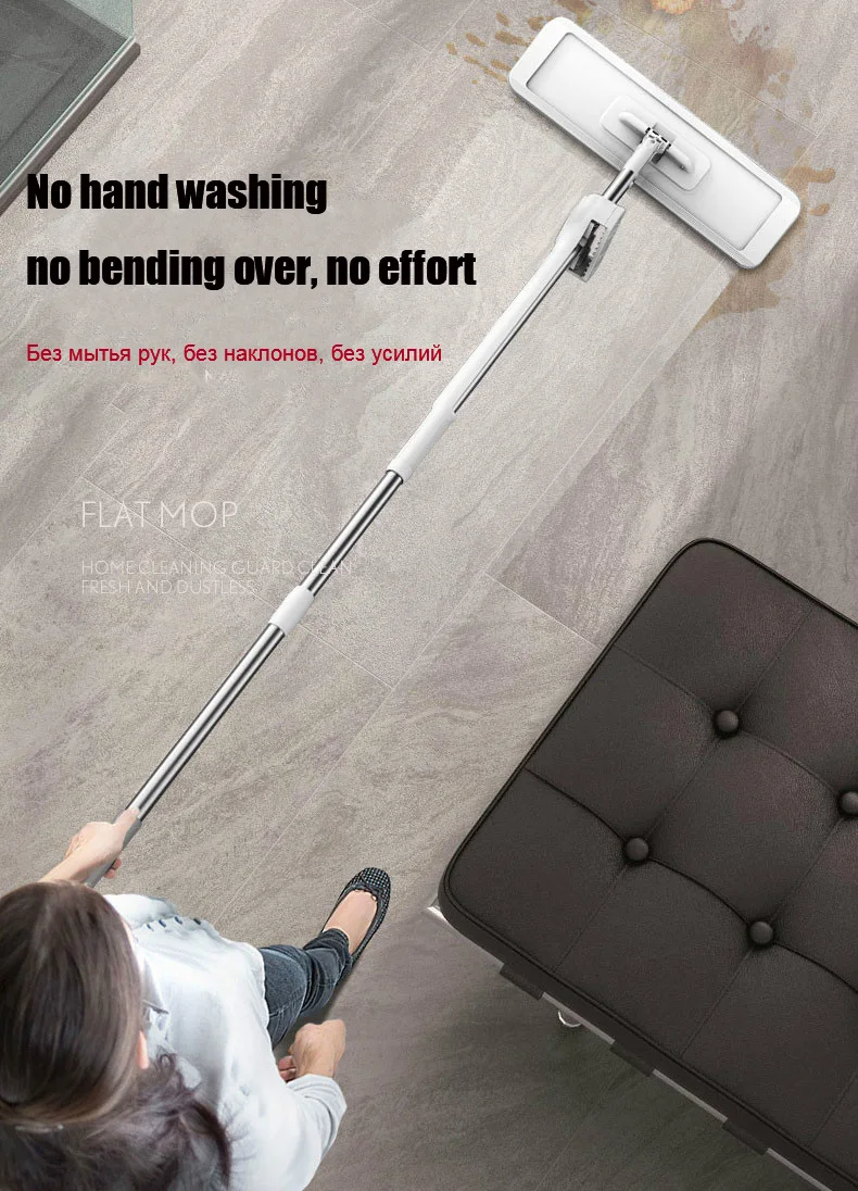 - 스테인리스 막대 + ABS 플라스틱 + 섬유 걸레로 만든 핸즈프리 걸레