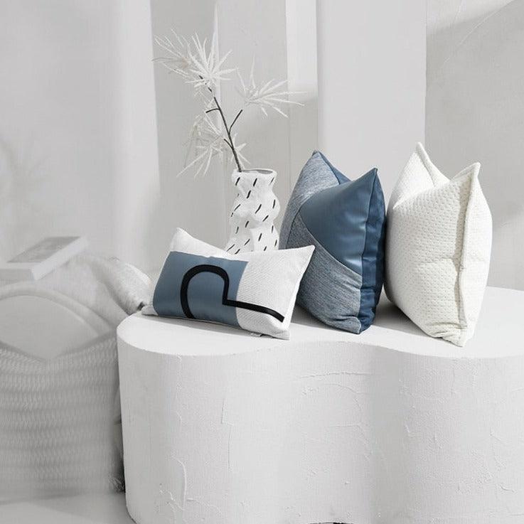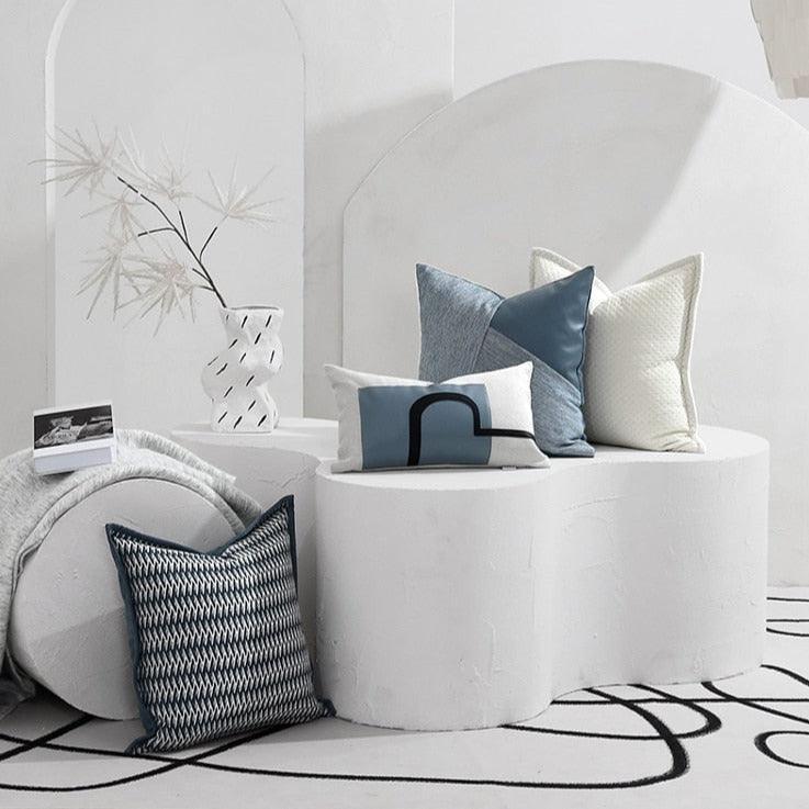 북유럽 럭셔리 쿠션 커버 세트 소파 솔리드 블루 직사각형 허리 베개 장식 쿠션