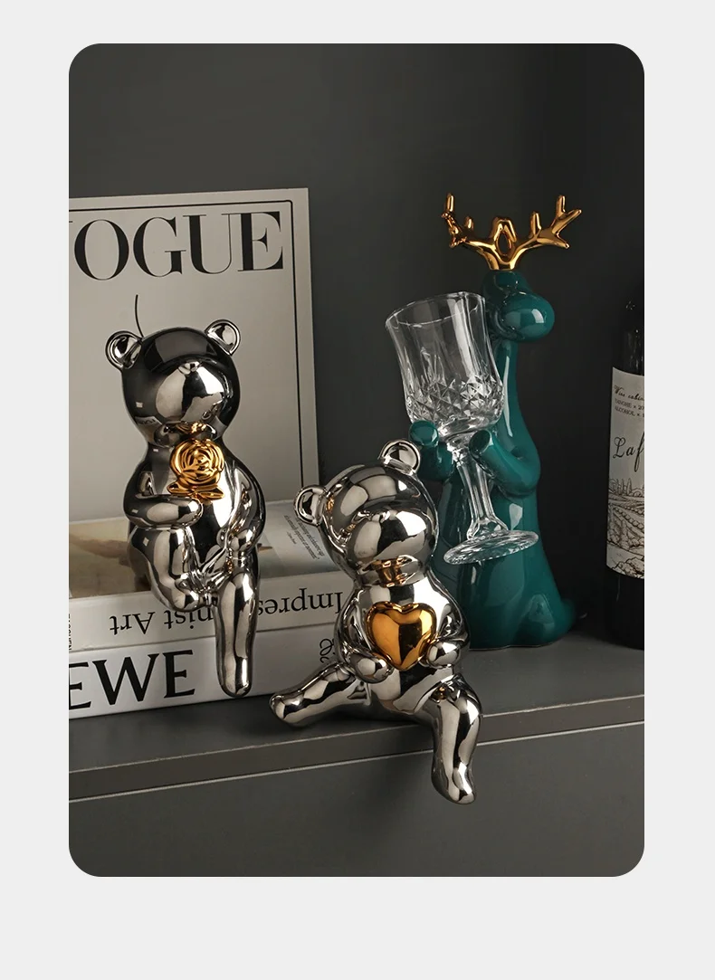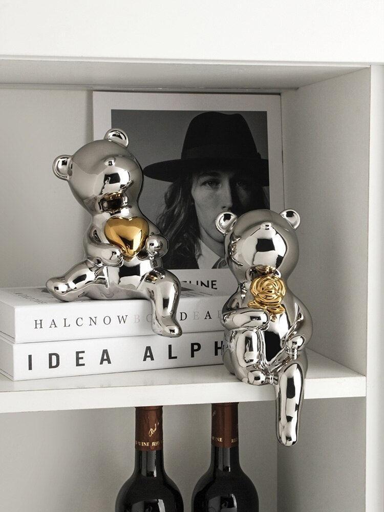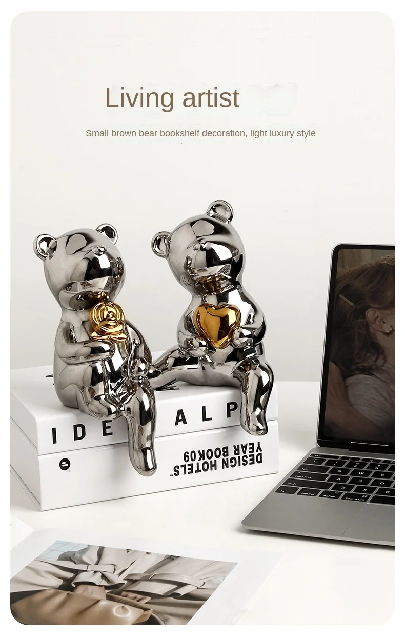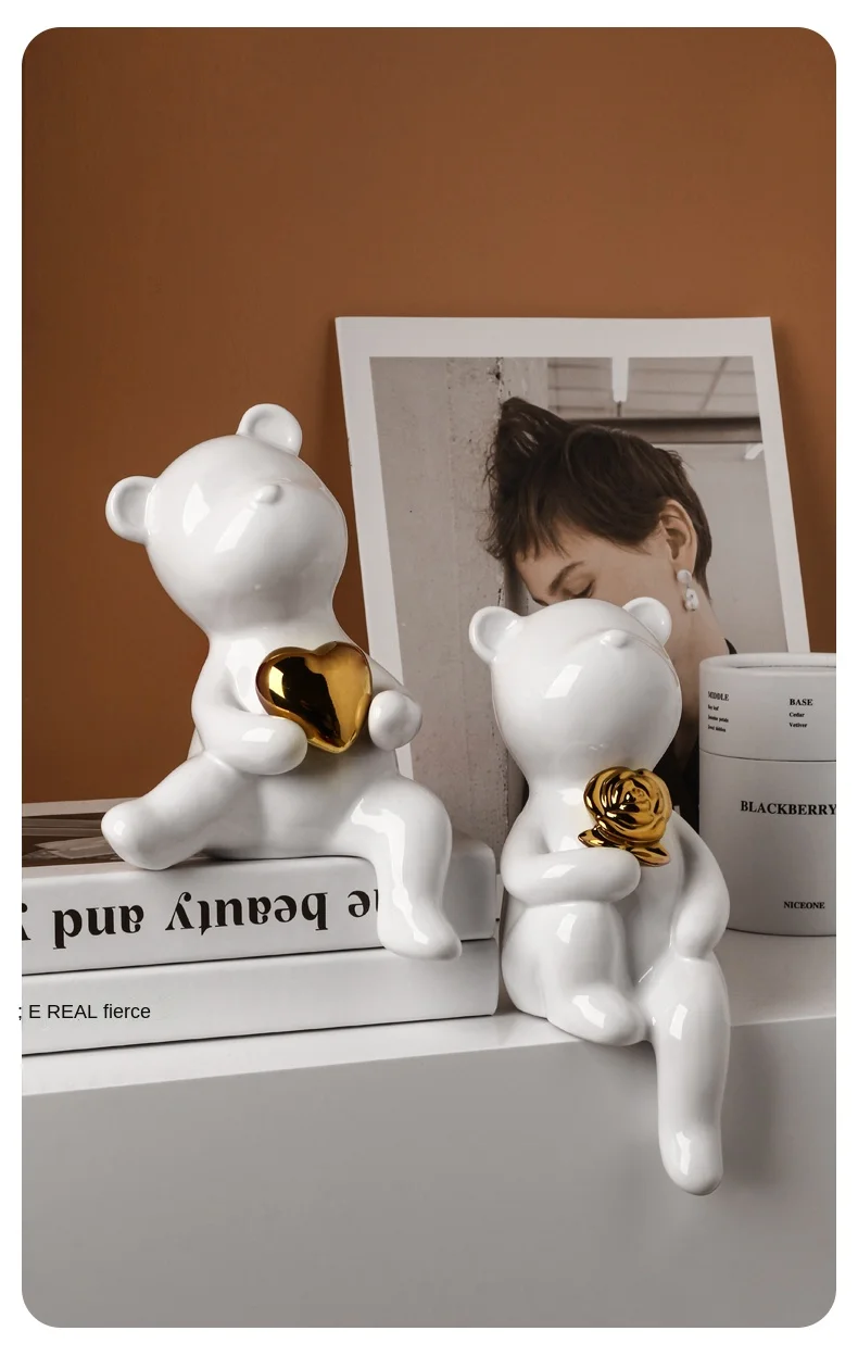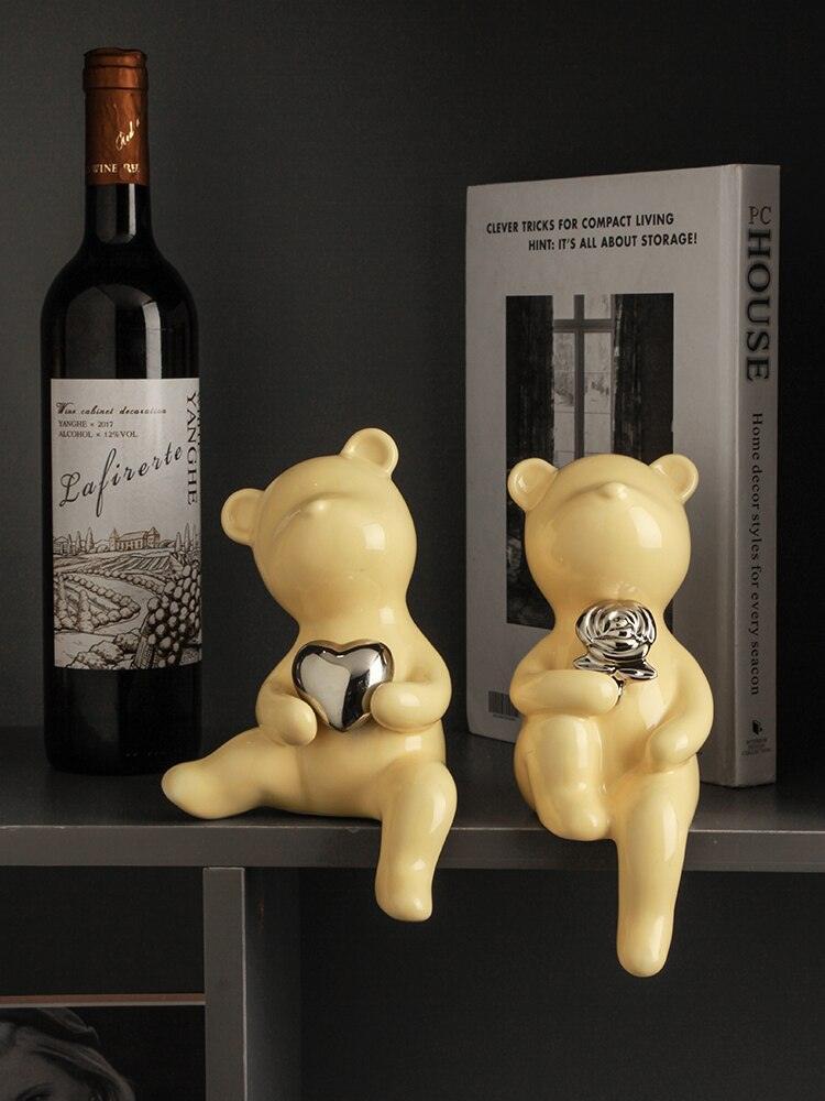 홈 장식 크리 에이 티브 베어 동상 데스크탑 장식품 만화 동물 장식 실내 인형 홈 액세서리 북유럽 조각