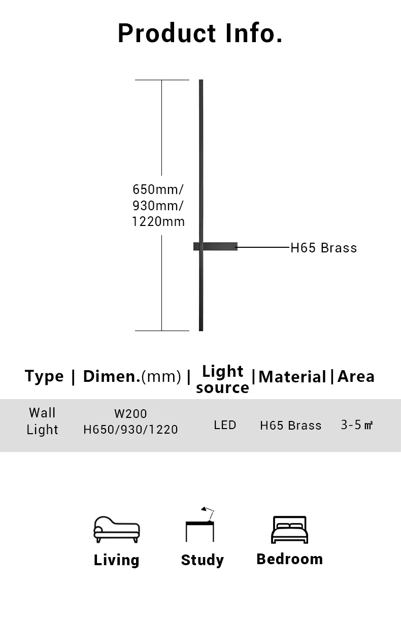 현대 노르딕 브래스 롱 바 LED 벽 램프 미니멀리스트 홈 룸 장식 사무실 생활 연구 침실