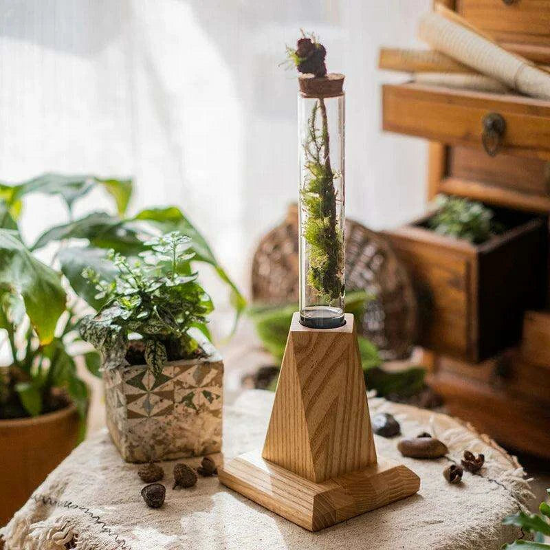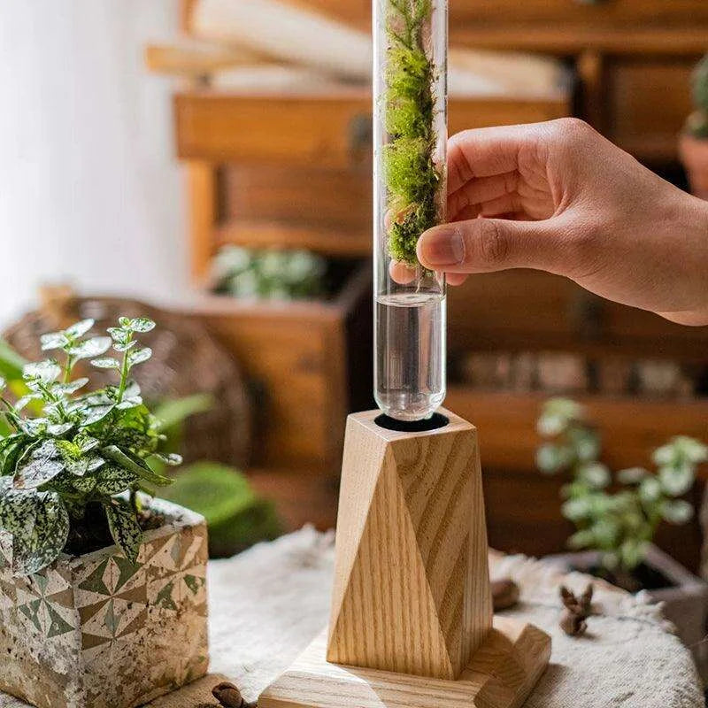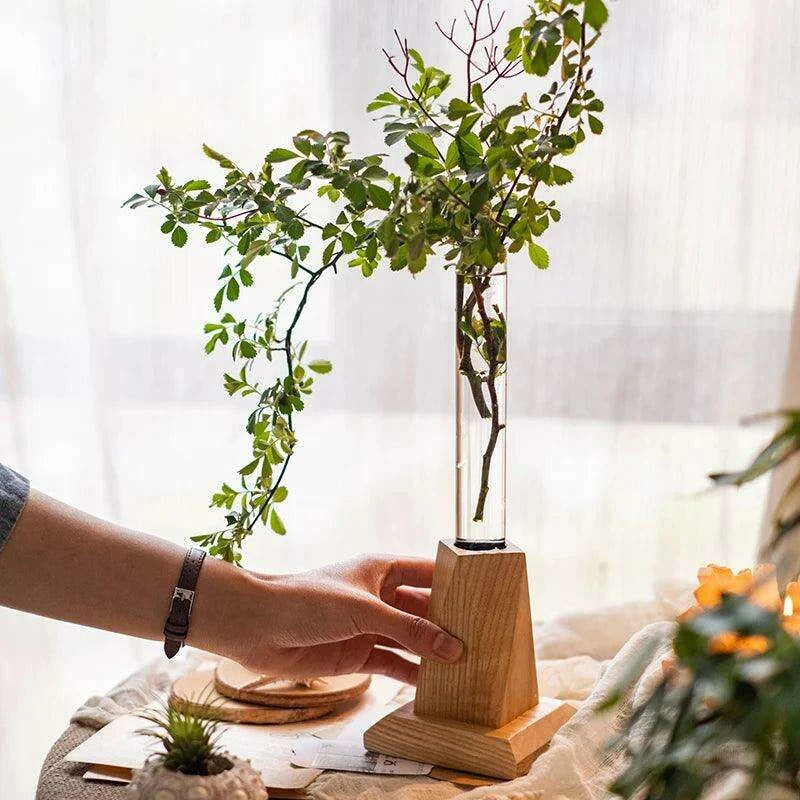 Nordic Chic Glass Test Tube Vase Collection with Wooden Stand - Stylish Hydroponic Plant Display