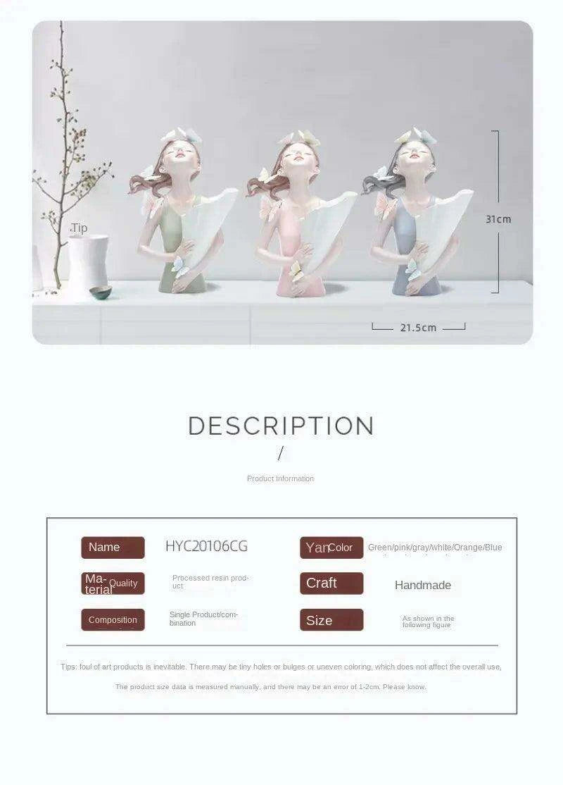 Nordic Butterfly Girl Resin Vase로 생활 공간을 아름다움의 안식처로 바꿔보세요. 우아한 디자인과 다용도성은 인생에서 더 멋진 것을 감상하는 사람들에게 필수품입니다. 집 장식에 예술성을 더해 이 아름다운 꽃병에 자신만의 이야기를 전해보세요.