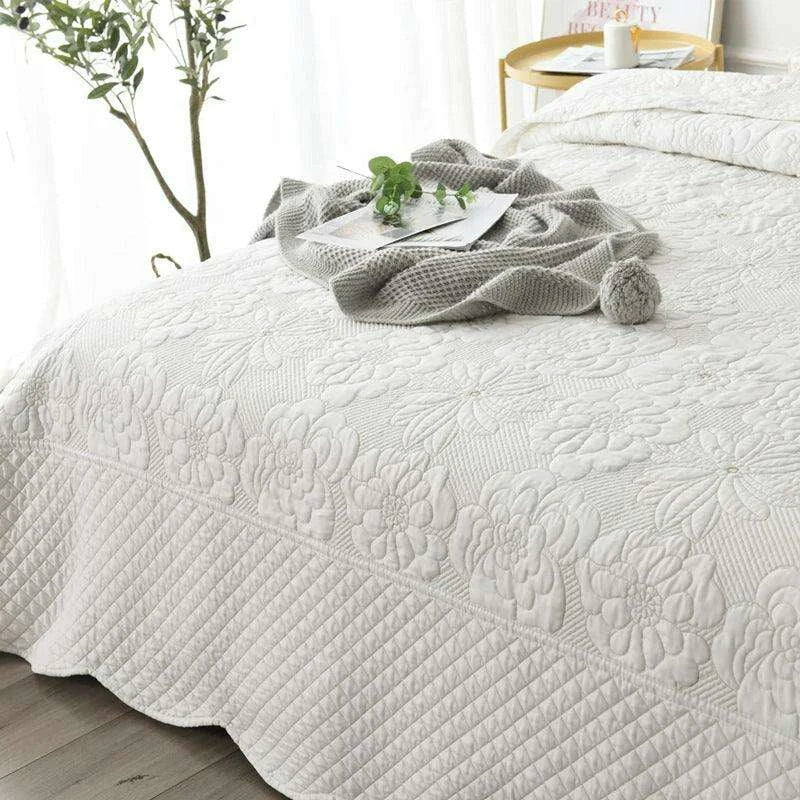 Nordic Elegance Cotton Quilt Set, Embroidered Summer Bedspread, 3-Piece Throw Coverlet- Très Elite- Très Elite