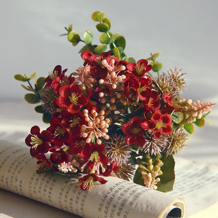 럭셔리 Botanica 과일과 빈티지 가짜 수국 꽃다발-실크 인공 꽃 웨딩 신부 꽃다발 가을 장식 홈 장식