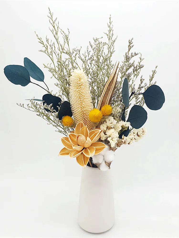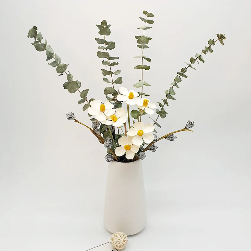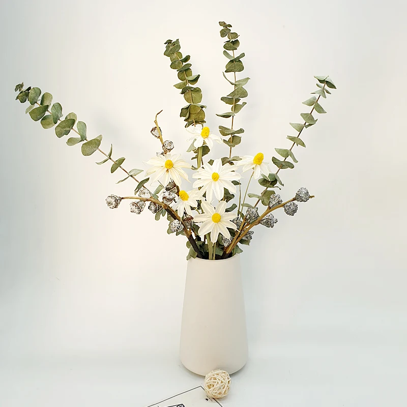 영원한 건조 꽃다발 자연 진정한 꽃 북유럽 스타일 홈 인테리어 장식 거실 소나무 콘 유칼립투스 해바라기