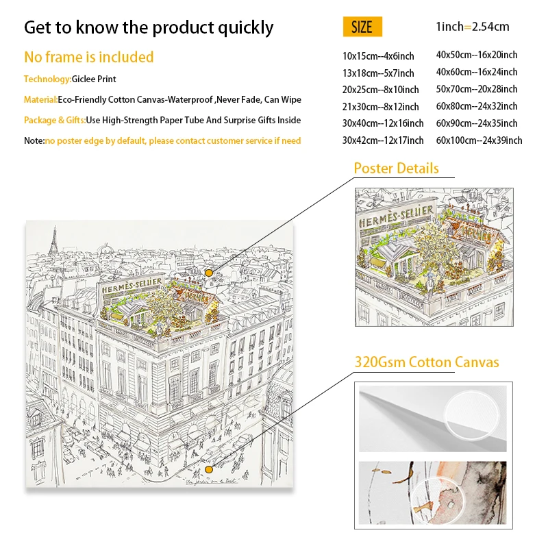 작품을 조심스럽게 다루세요. 친환경 면 캔버스는 쉽게 닦아낼 수 있으며, 고강도 종이 튜브 포장으로 완벽한 상태로 도착합니다. 액자를 만들 경우에는 부드러운 손으로 작업하여 깨끗한 외관을 유지하세요.