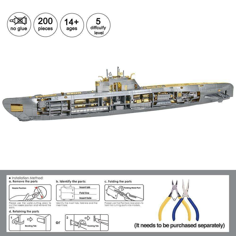 3D 금속 퍼즐 십대를위한 DIY 잠수함 모델 빌딩 키트 최고의 선물 두뇌 티저