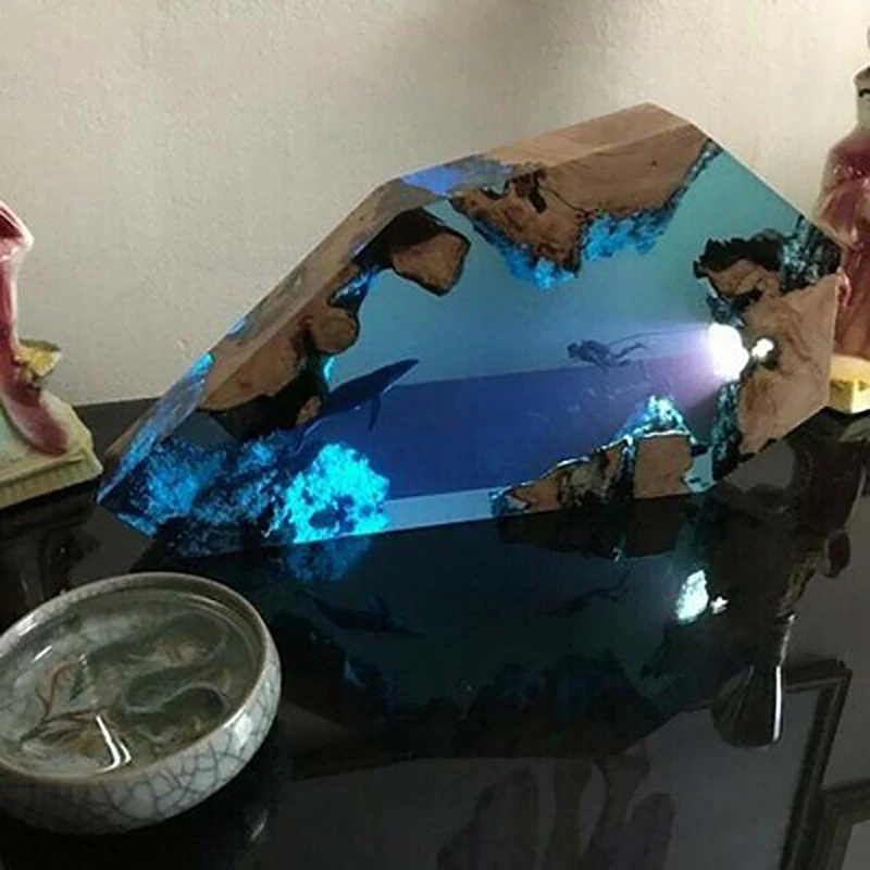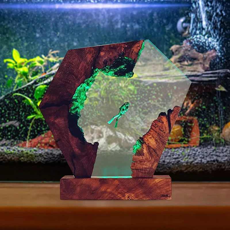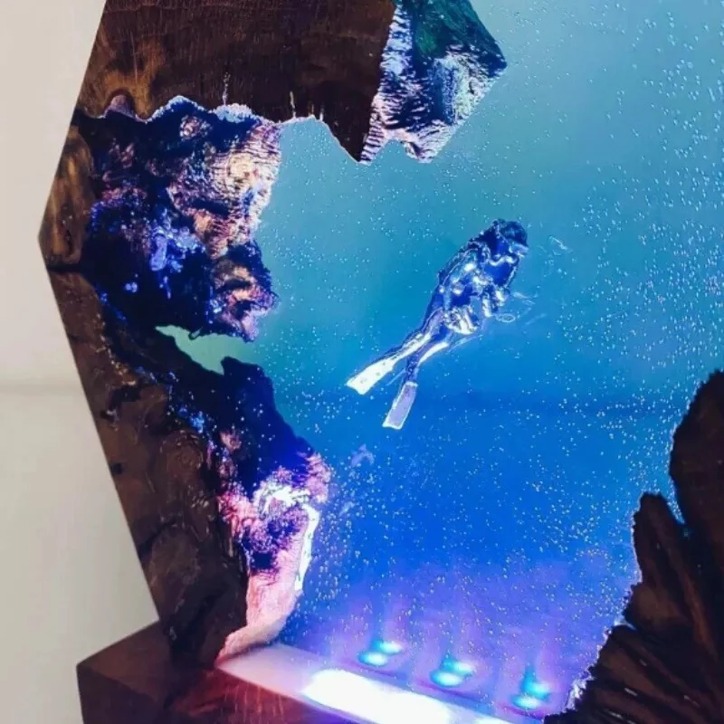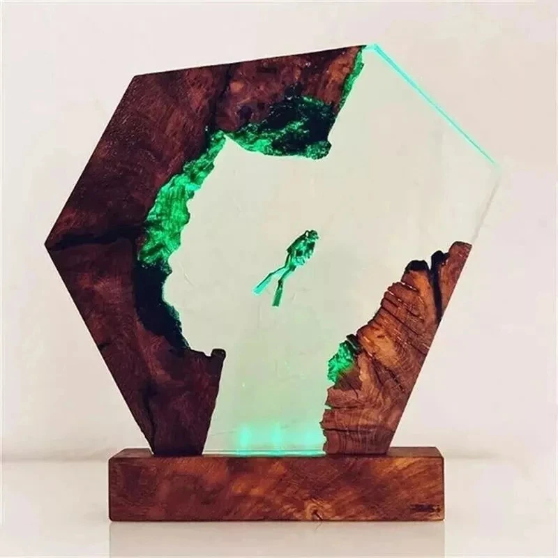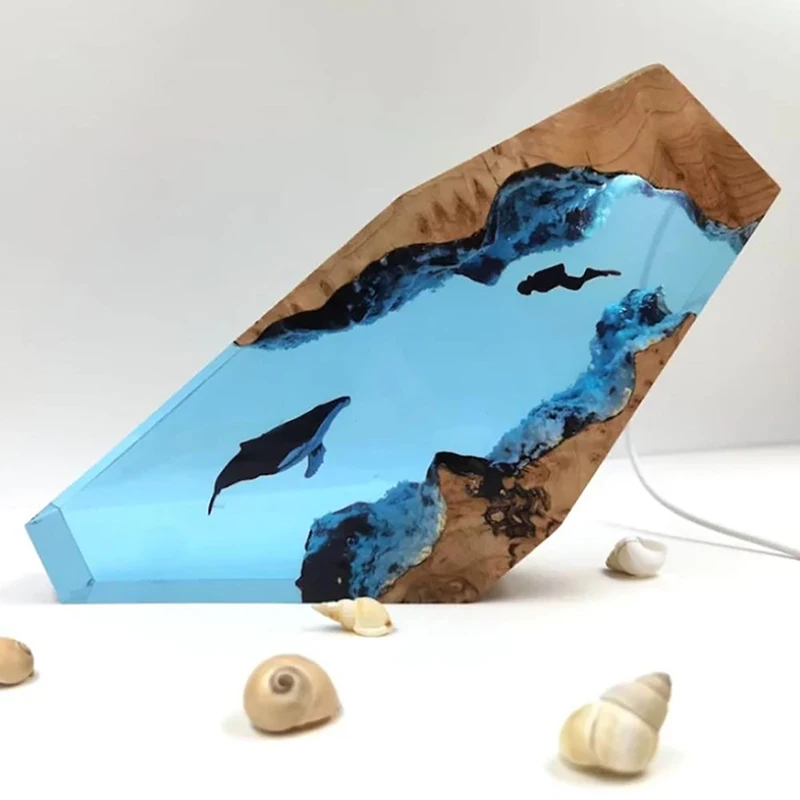 대형 에폭시 수지 램프 스쿠버 다이버 LED 야간 조명 고래 심해 쉬머 데스크탑 램프 장식품 크리 에이 티브 공예 홈 인테리어