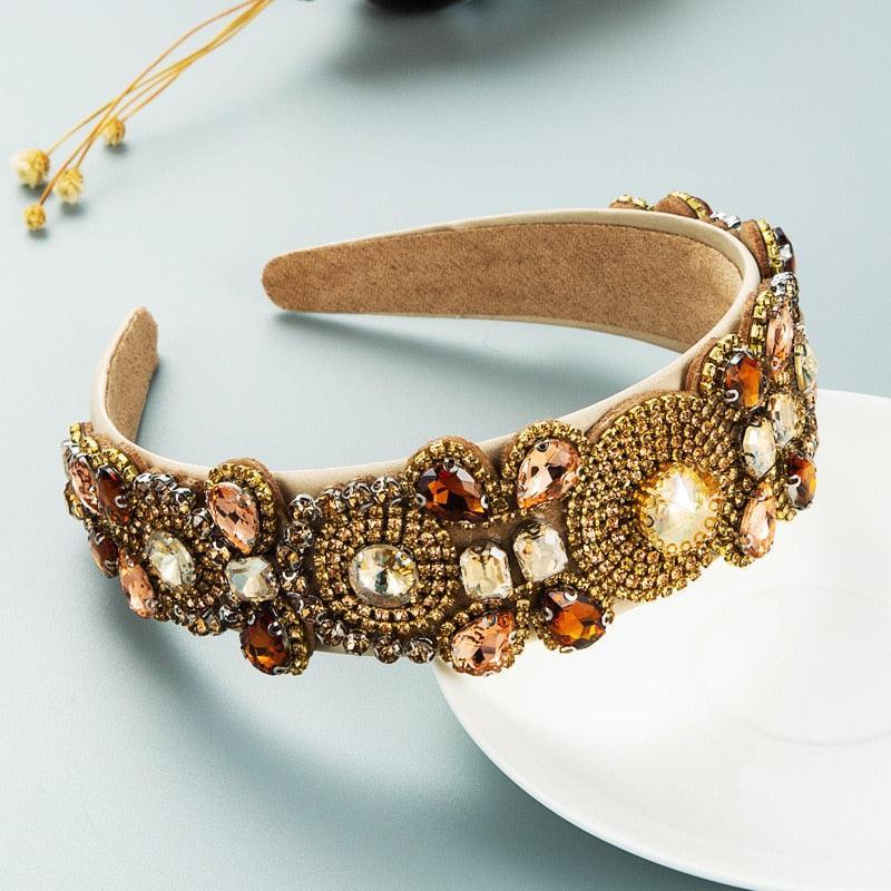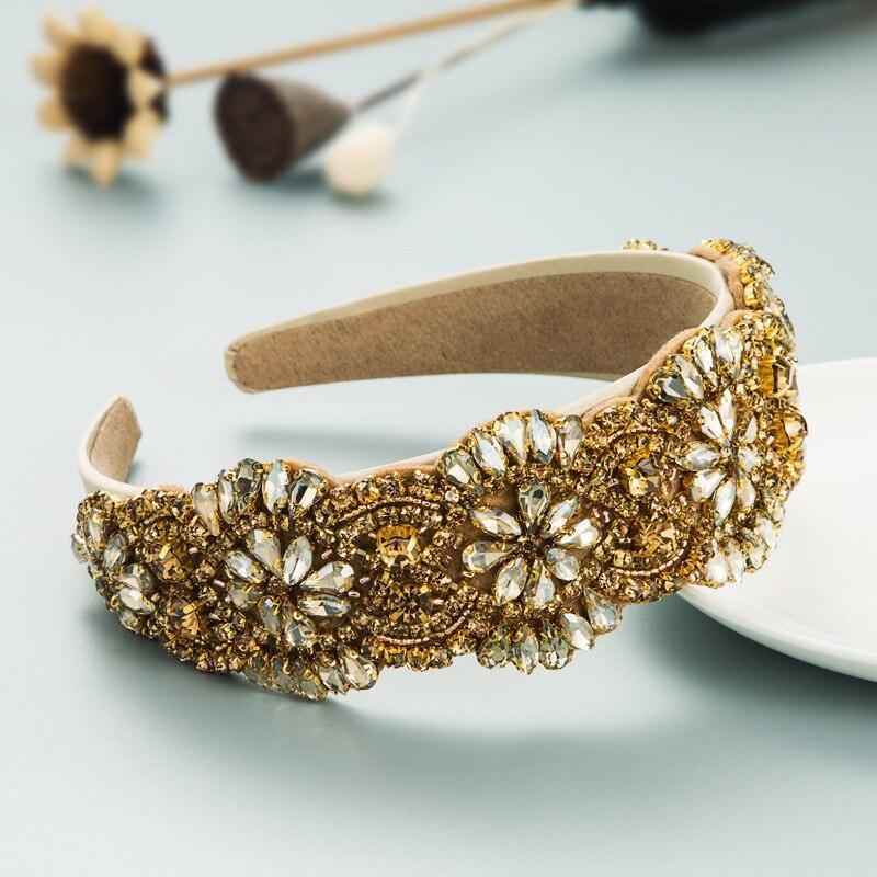 럭셔리 Botanica 바로크 전체 라인 석 머리띠 헤어 액세서리 여성 손으로 수 놓은 컬러 유리 라인 석 꽃 넓은 챙 머리 후프