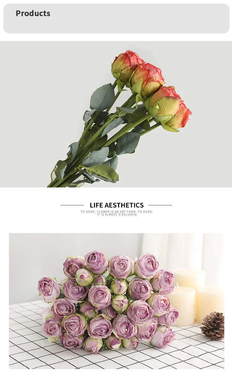 고급 보타니카 구운 모양의 장미 꽃다발, 홈 테이블 장식을 위한 잎 인공 꽃 거실 장식