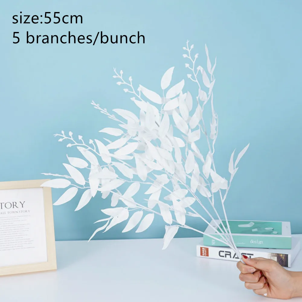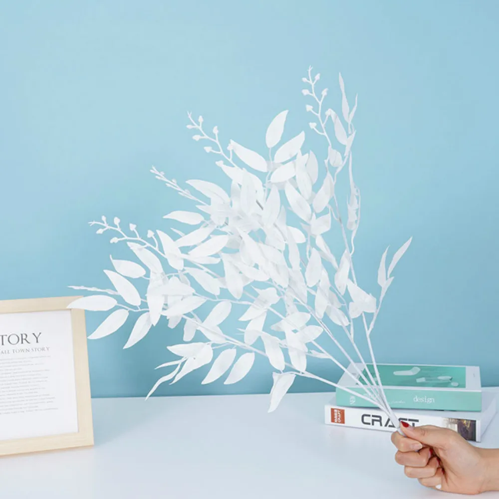 인공 흰 꽃 식물 결혼식 꽃다발 장식 실크 꽃 홈 꽃병 장식 버드 나무 잎 녹색 잔디 가짜 꽃 식물