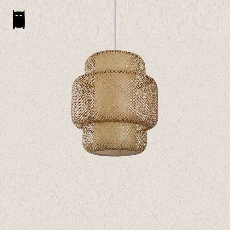 대나무 고리 버들 등나무 랜턴 그늘 펜던트 전등 아시아 일본 서스펜션 램프 Plafon Luminaria 식탁 스터디 룸