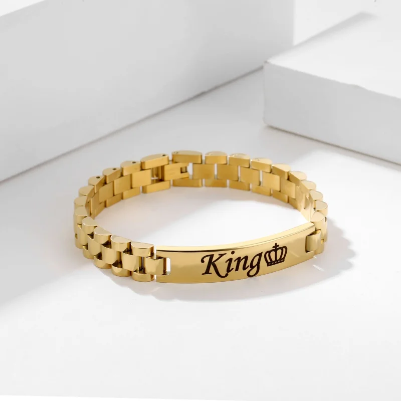 맞춤형 맞춤형 조각 이름 ID 팔찌 팔찌 | 스테인레스 스틸 골드 편지 쥬얼리