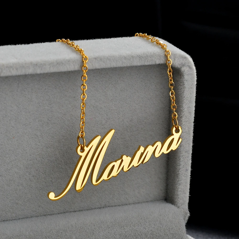 UZone 맞춤형 맞춤 이름 목걸이 골드 컬러 맞춤형 네임 플레이트 여성용 스테인레스 스틸 초커 목걸이 기념일
