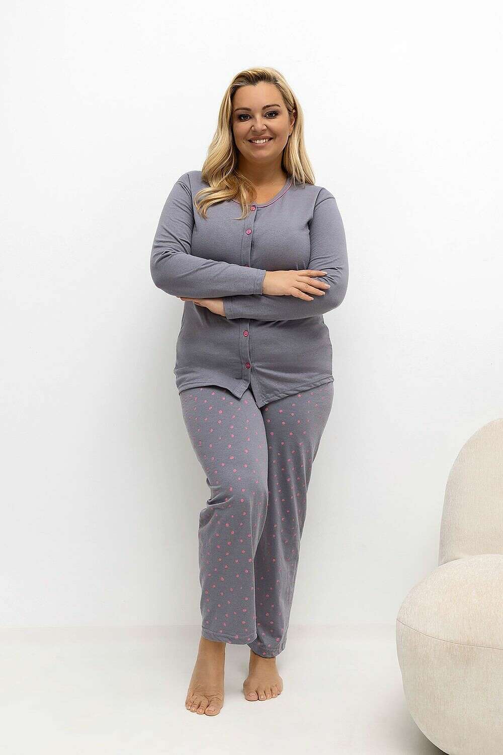 Plus Size Cotton Polka Dot Pajama Set – Button-Up Top & Pants