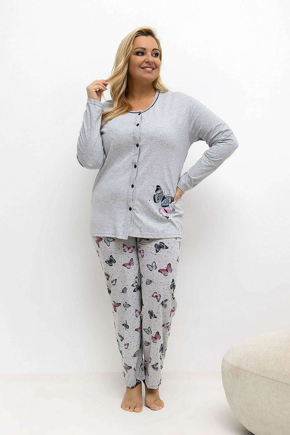 Plus Size Cotton Pajama Set – Butterfly Print Buttoned Top & Pants