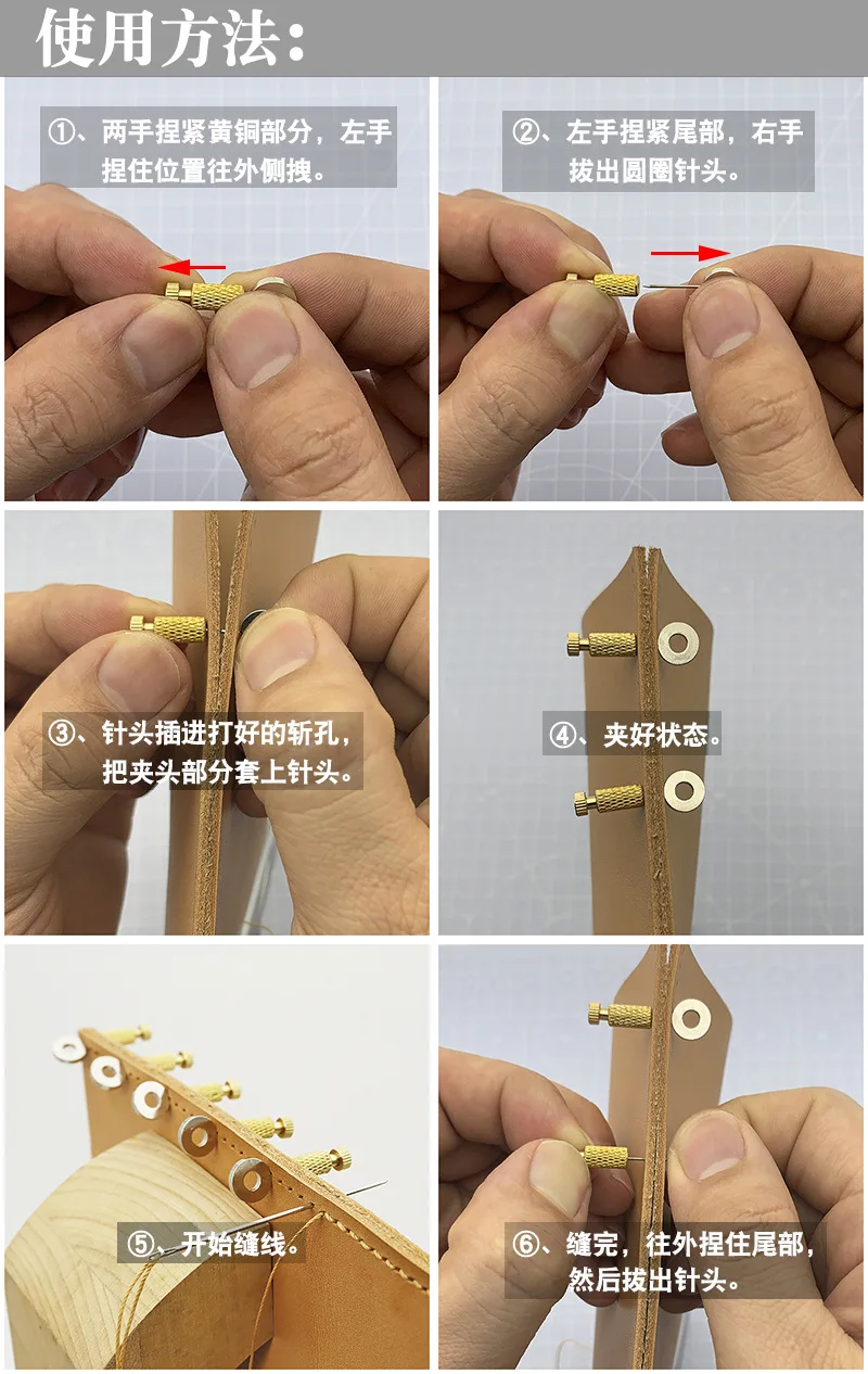 제품 사용법: 가죽 재봉 잠금 장치 위치 지정, 절단 구멍 정렬, 절단 구멍 전위 방지, 재봉 주름 감소.