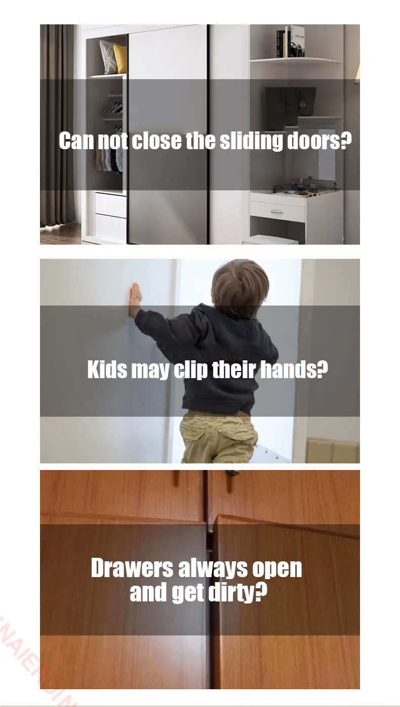 - 캐비닛 도어, 서랍, 뚜껑, 옷장 도어를 안전하게 닫아줍니다.