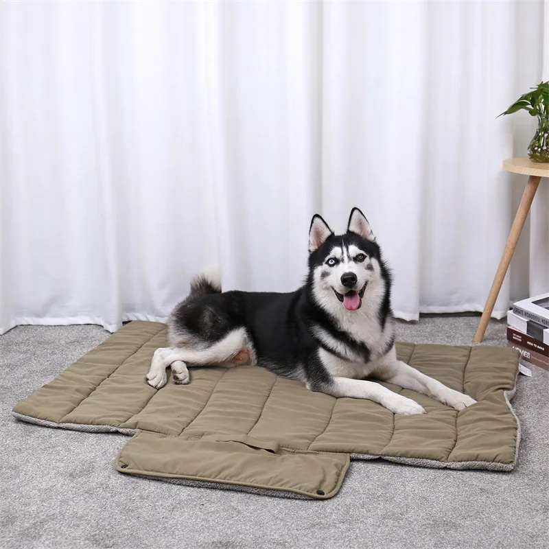 큰 개를위한 애완견 침대 고양이 매트 부드러운 휴대용 접이식 쿠션 편의성 따뜻한 두꺼운 강아지 대형 침대 여행 필수 운반