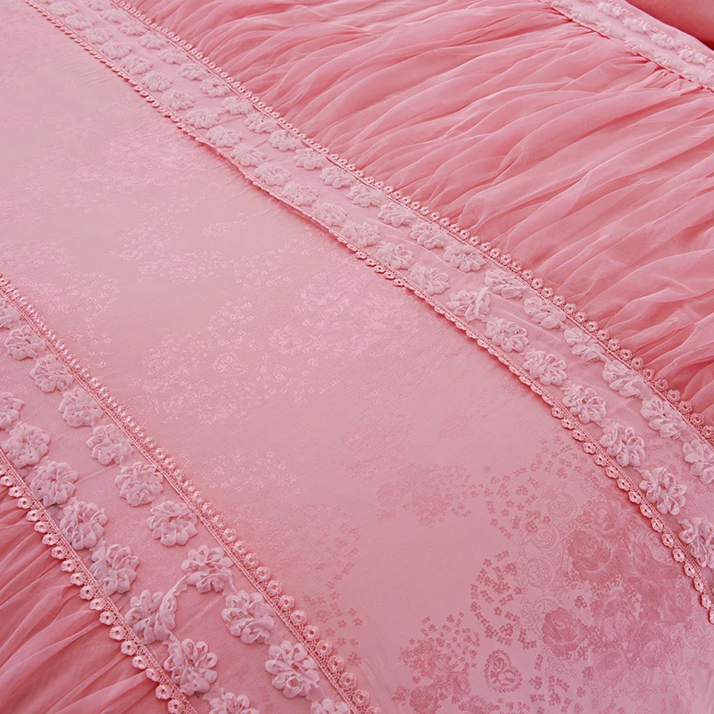 • Exquisite Design: The intricate lace flower pattern coupled with delicate ruffles creates an enchanting atmosphere, making it ideal for a princess-themed bedroom.