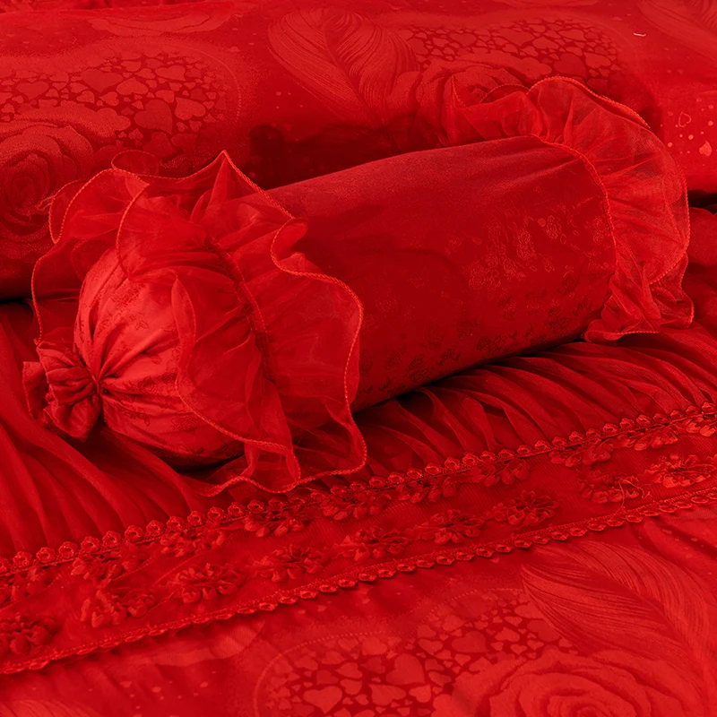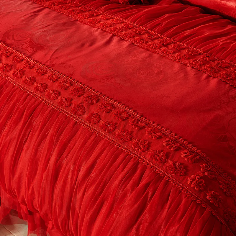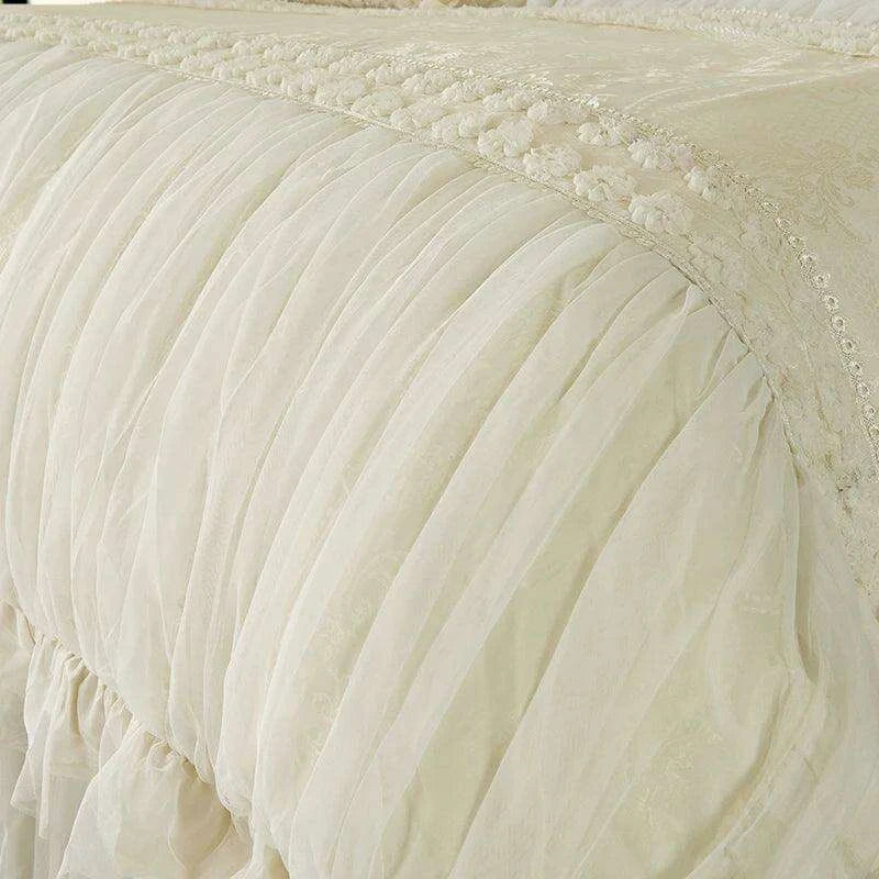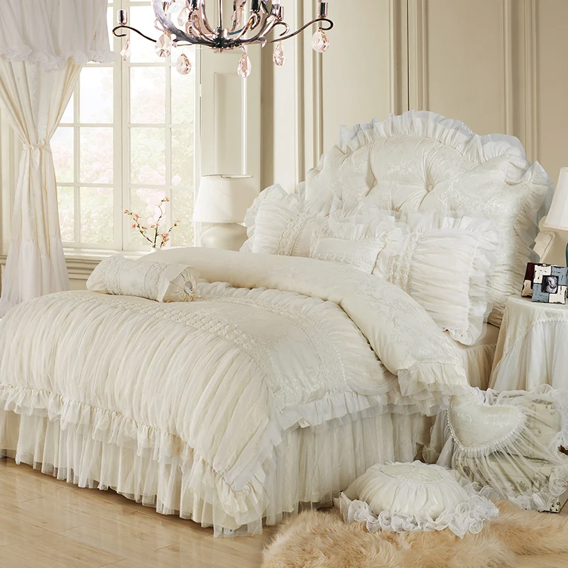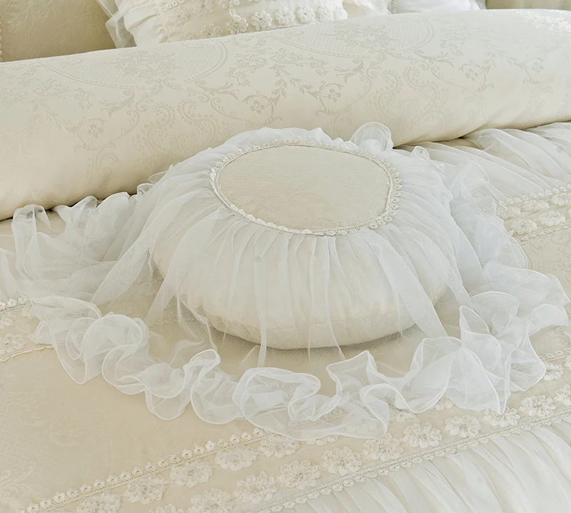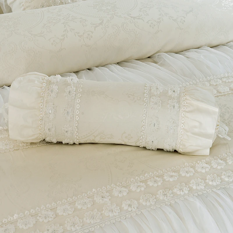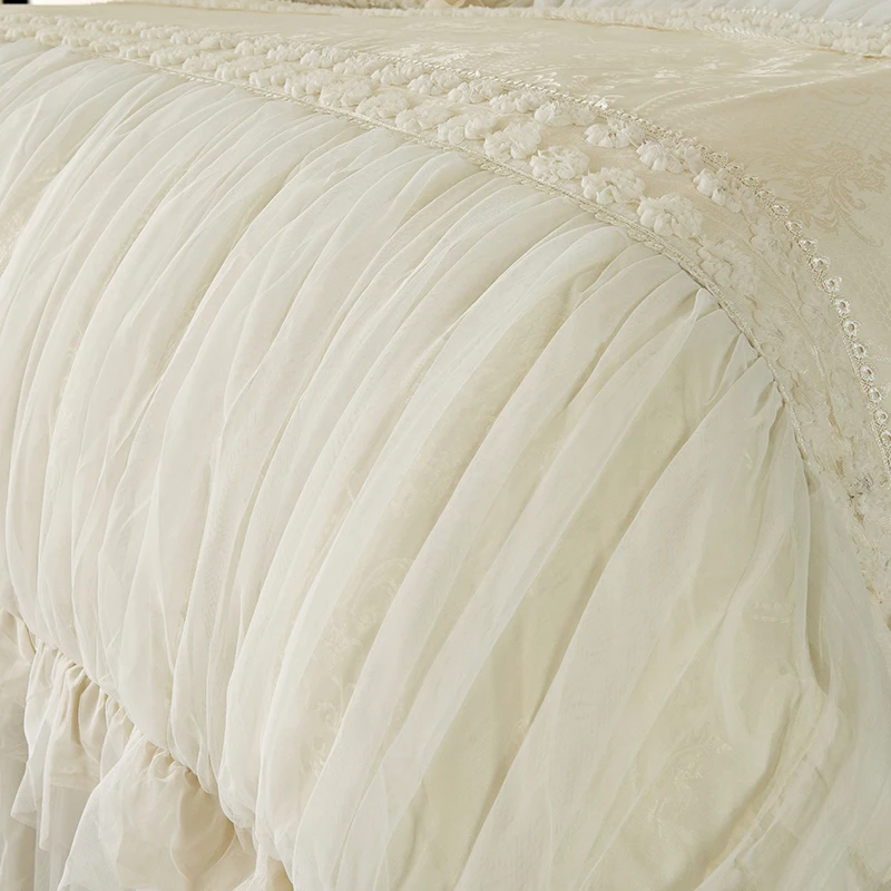 Transform your bedroom into a sanctuary of elegance and charm with the Lace Flowers Princess Bedding Set. This luxurious collection features a stunning beige jacquard design, perfect for those who cherish sophistication and style.