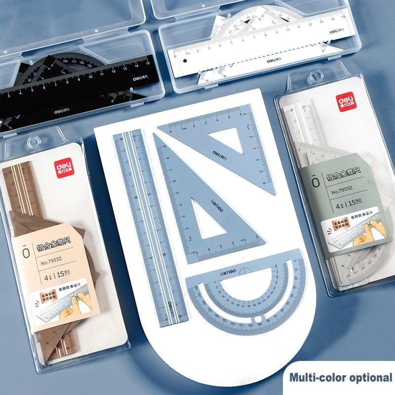 델리 금속 눈금자 세트 | 학교 어린이를 위한 다기능 드로잉 삼각형 눈금자 | 4pcs 사무용품