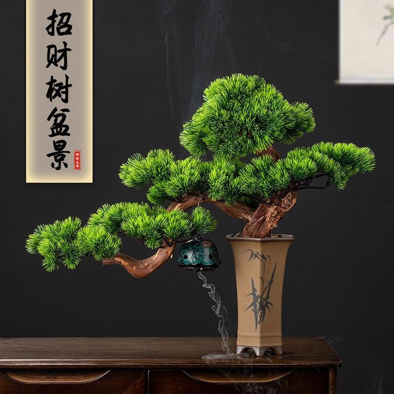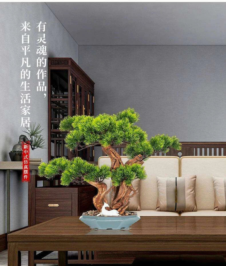 중국어 친선 시뮬레이션 공장 화분 환경 보호 럭키 게스트 소나무 가정용 거실 베란다 테이블 장식
