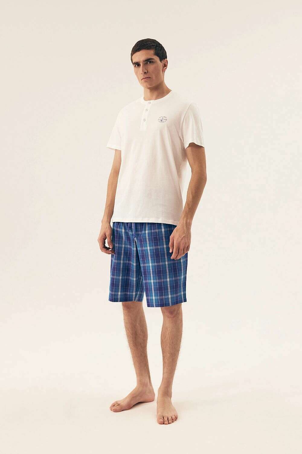 This pajama is the perfect choice for men who value comfort and convenience during sleep. Made of soft and pleasant to the touch fabric, the pajama is extremely comfortable and ensures a relaxing sleep. The t-shirt with a classic, round neckline is a versatile element that will work in any situation. Additionally, the pajama has three button fastenings, which adds character and makes it easy to put on. The shorts with a trendy print are the perfect combination of comfort and style. The comfortable elastic waistband and drawstrings allow for a perfect fit to the silhouette. The shorts do not have pockets, which ensures even greater comfort during sleep. Made of soft and breathable fabric, the pajama is the perfect choice for warm nights. It allows the skin to breathe and ensures a comfortable sleep. The pajama is packed in an elegant box, making it an ideal gift for a loved one. It is a perfect gift idea for birthdays, name days, holidays, or any other occasion. This pajama is a must-have in every man's wardrobe who values comfort and convenience during sleep. Its stylish look and practical details make it ideal for many nights. Dimensions: Size M: Chest 94-98 cm, Hips 98-102 cm Size L: Chest 98-102 cm, Hips 102-106 cm Size XL: Chest 102-106 cm, Hips 106-110 cm Size XXL: Chest 106-110 cm, Hips 110-114 cm Size XXXL: Chest 114-120 cm, Hips 114-118 cm