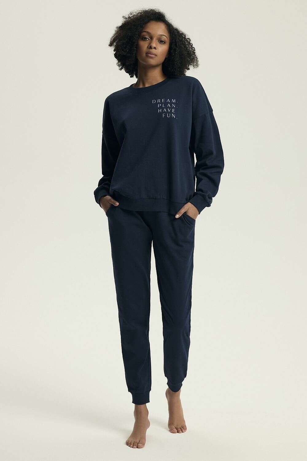 Women's Cotton Pajama Set – Loose Fit, Slogan Top & Pocket Pants