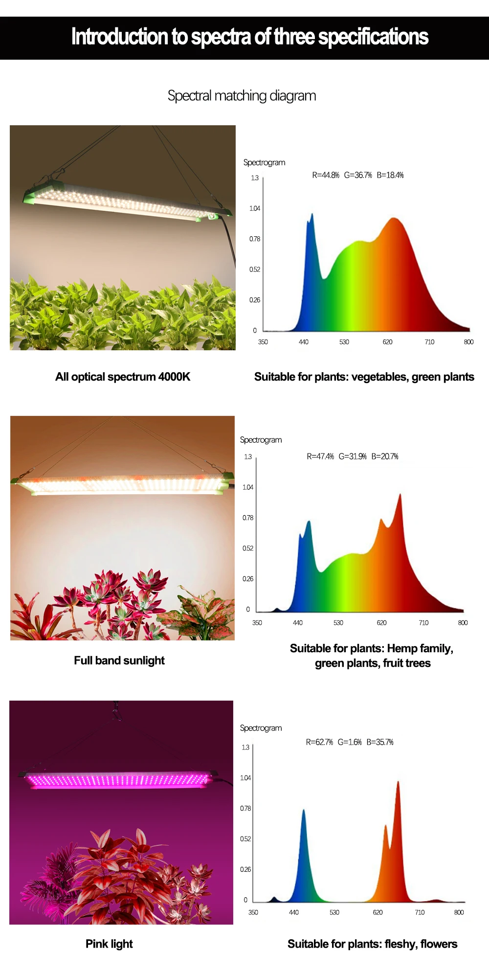 4. 밝은 색상: 3000K+5000K+660NM+730NM+395NM / 370-780NM / 4000K